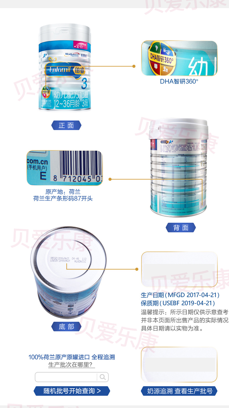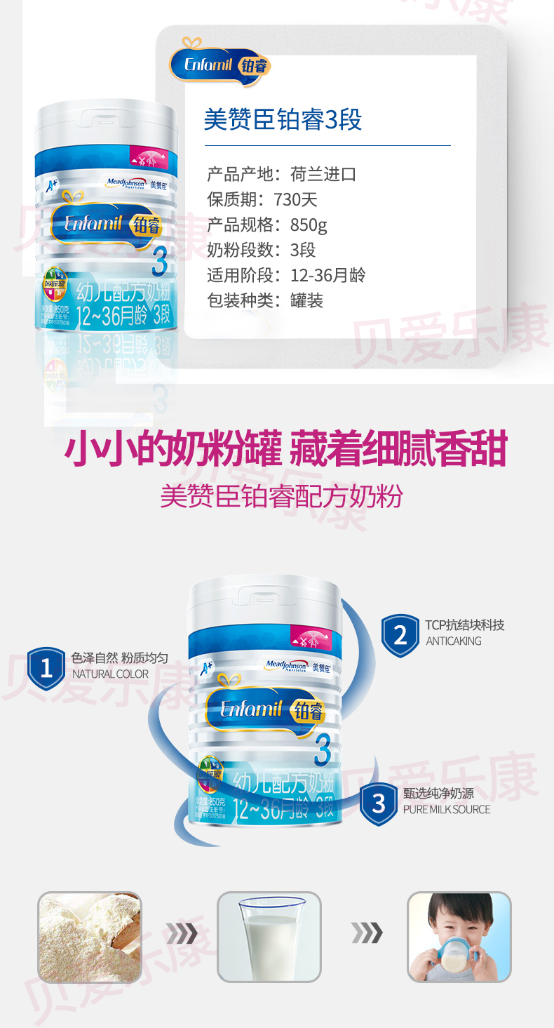 商品名称:美赞臣 3段铂睿荷兰版850g克美赞臣A+幼儿配方奶粉3罐组合