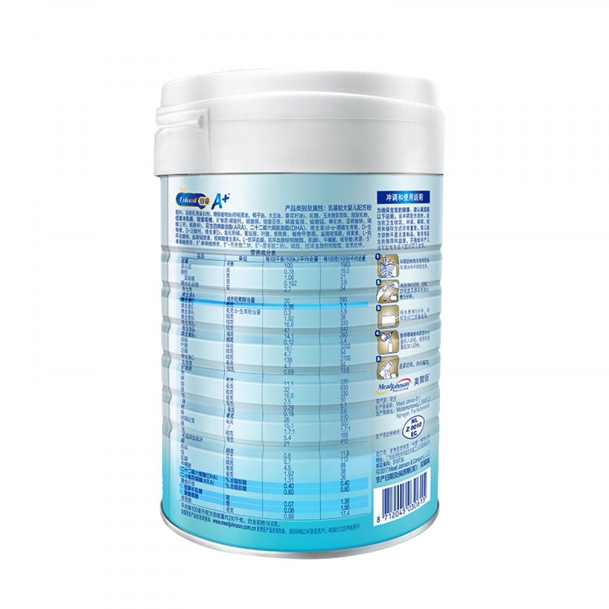 商品名称:美赞臣 铂睿2段850克婴幼儿配方牛奶粉荷兰版2罐