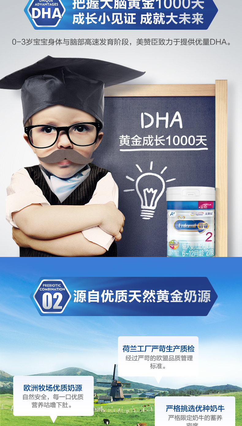 美赞臣 铂睿2段850克婴幼儿配方牛奶粉荷兰版2罐