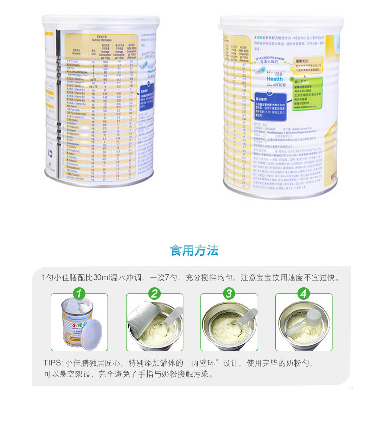 商品名称:雀巢 小佳膳瑞士进口婴幼儿儿童全营养配方粉400g*3挑食