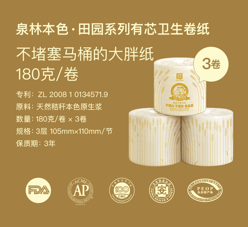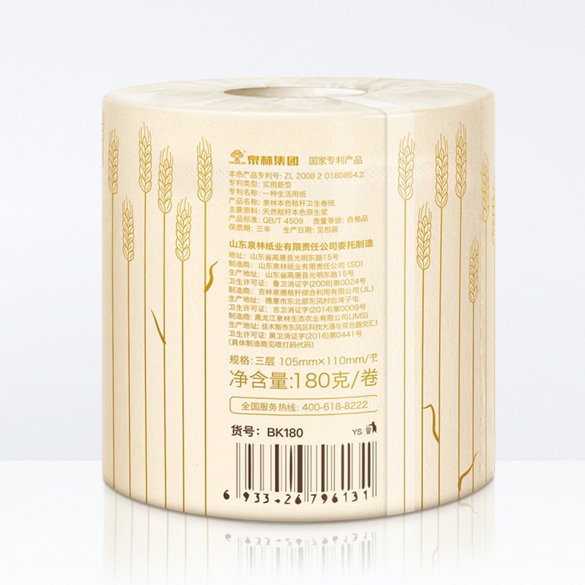 商品名称:泉林本色 有芯卷筒纸不漂白无添加大克重180g三卷组合装