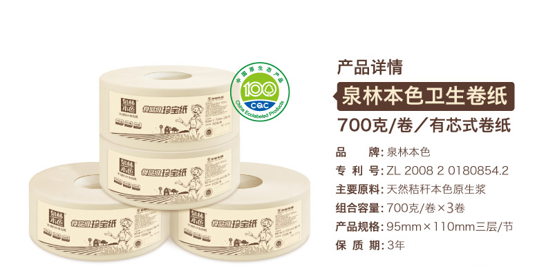 商品名称:泉林本色 大盘纸大卷纸珍宝纸卷纸厕纸手纸商务酒店用纸700克*3盘