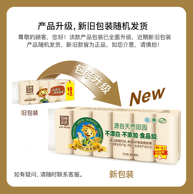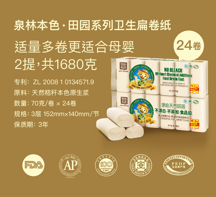 商品名称:泉林本色 纸品扁卷纸健康本色无芯卫生纸70g*24卷组合装