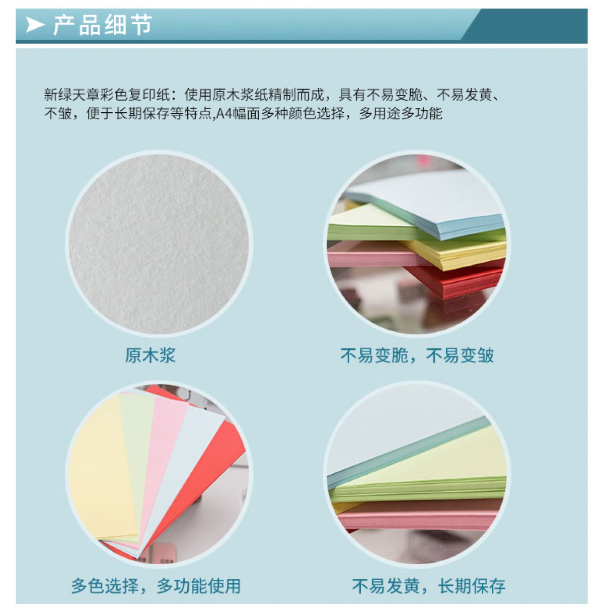 商品名称:天章 彩色纸A4 80克学生彩色纸手工纸彩色折纸粉红 浅黄 浅绿 浅蓝 大红80克500张/包彩色打印复印纸