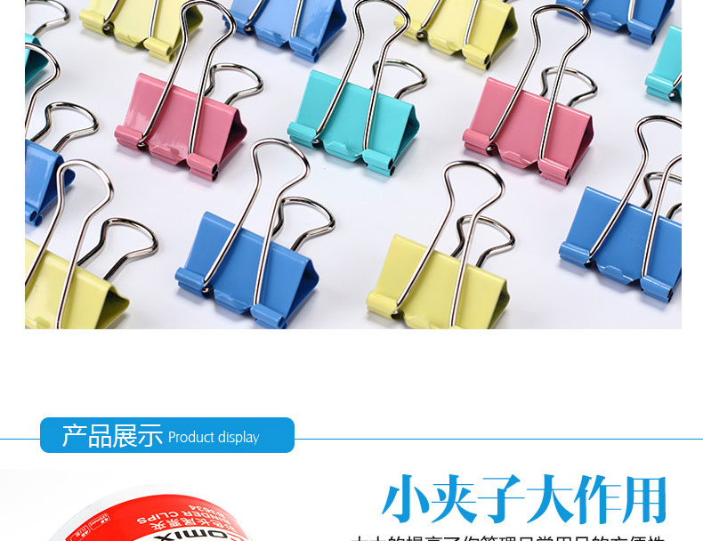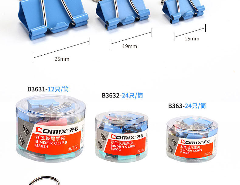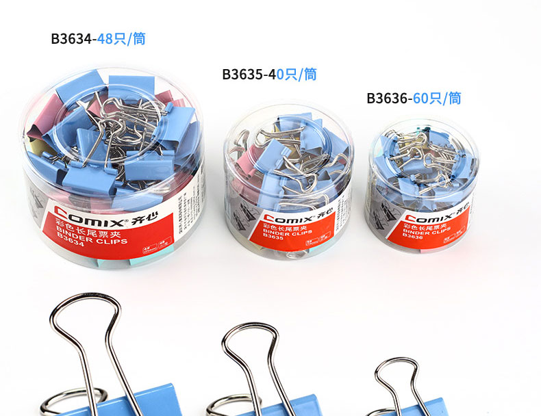 商品名称:齐心 B3635彩色长尾票夹 5# 19mm 40只/筒