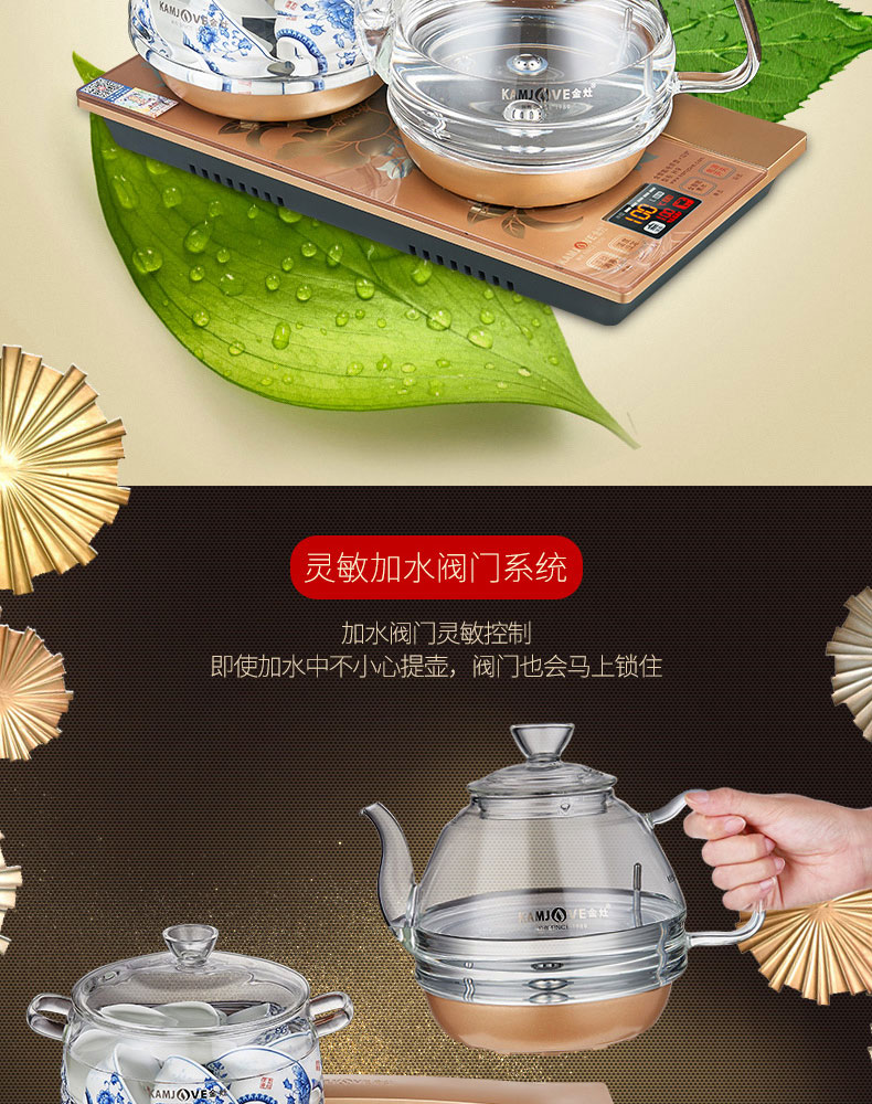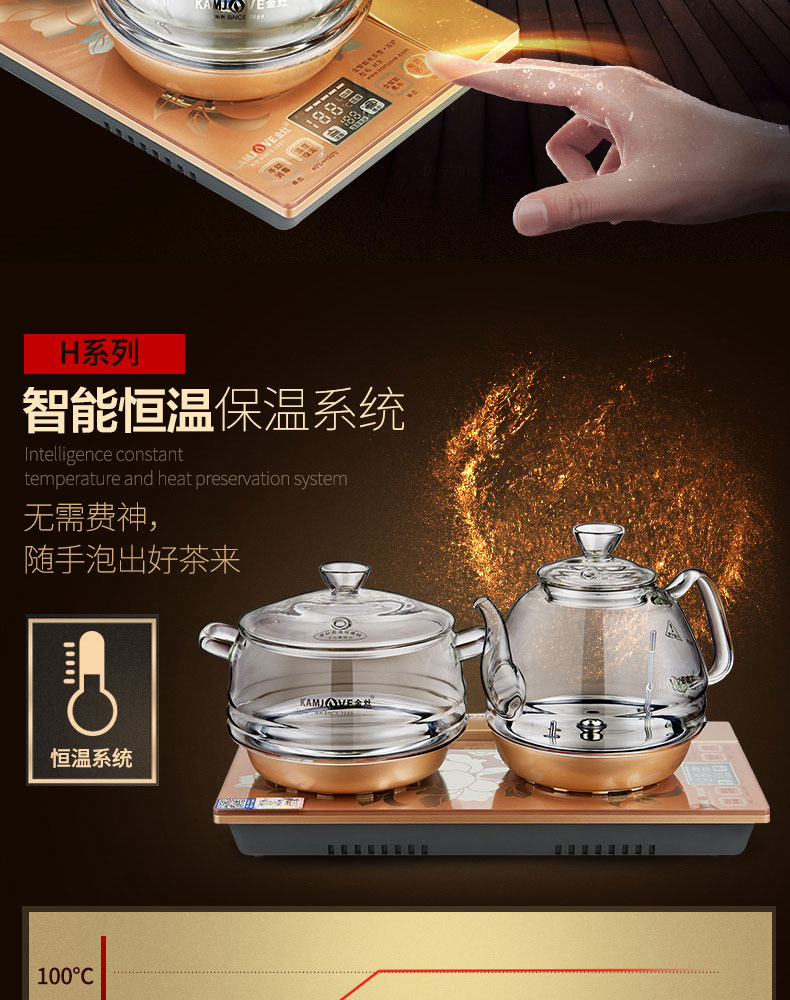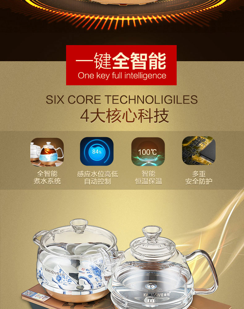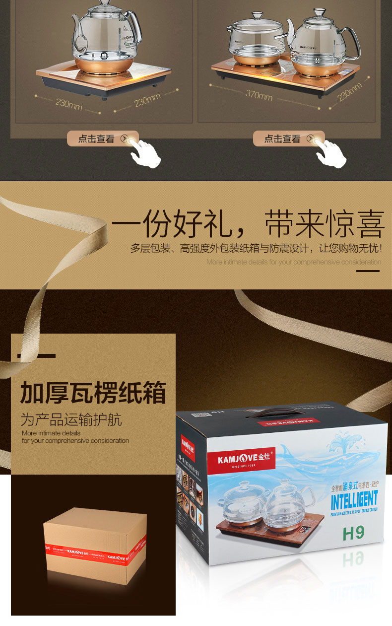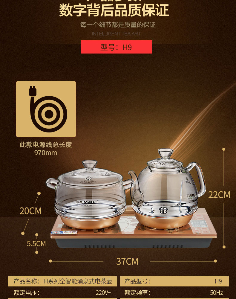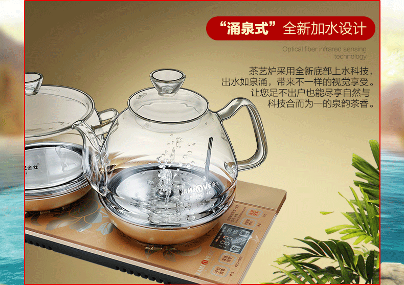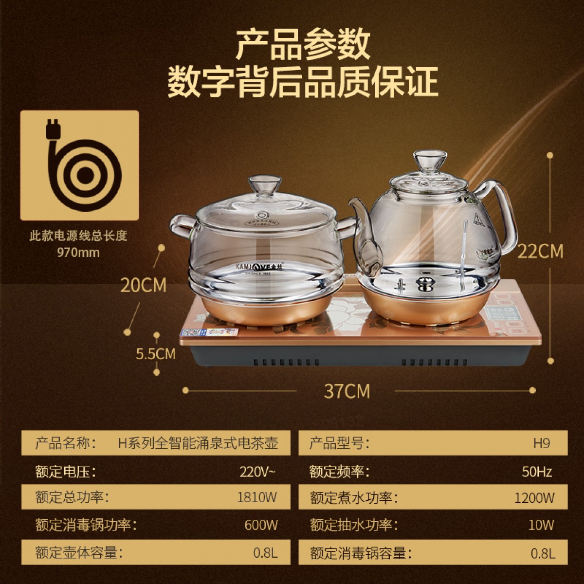 商品名称:金灶 智能全自动底座上水玻璃电热水壶电磁炉功夫茶具 H9