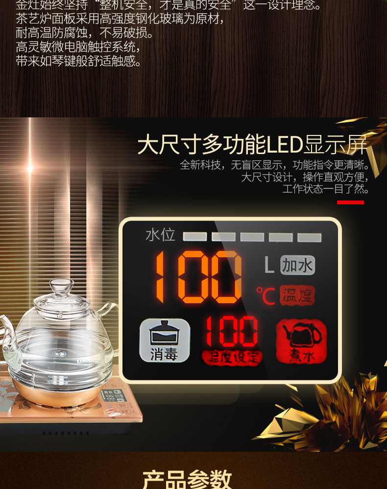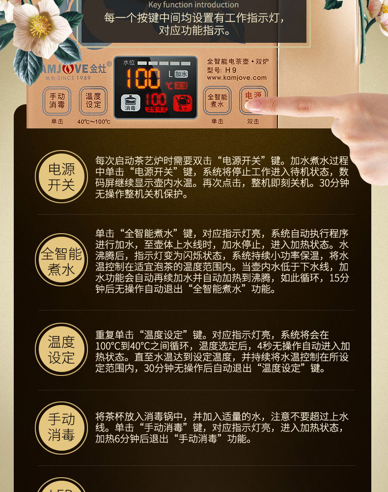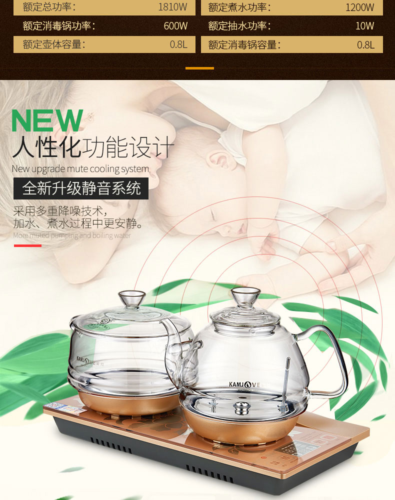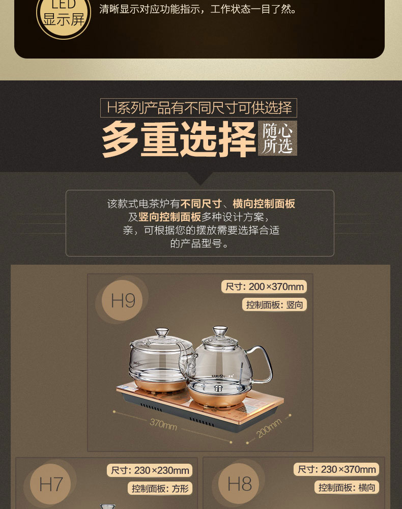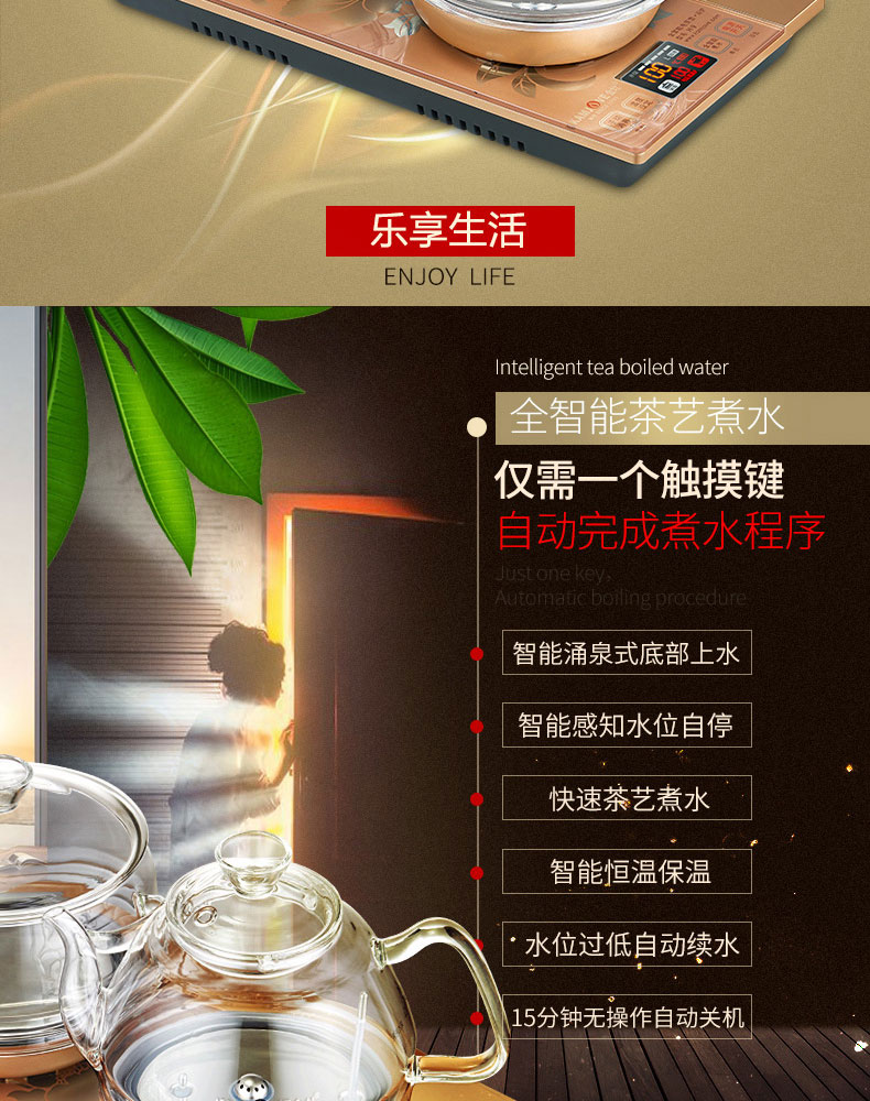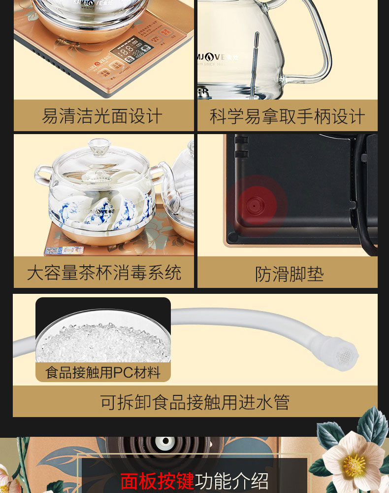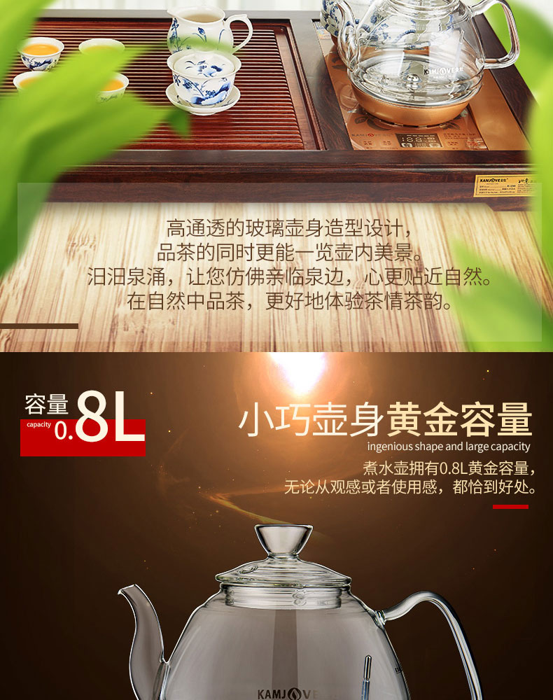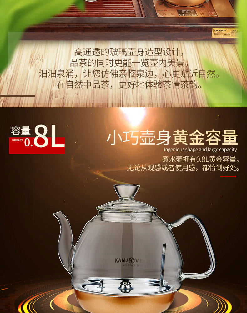 商品名称:金灶 智能全自动底座上水玻璃电热水壶电磁炉功夫茶具 H9