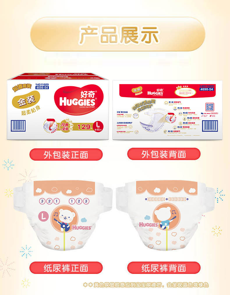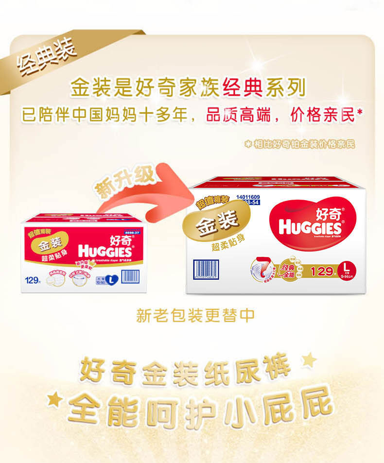 商品名称:好奇 金装超薄透气纸尿裤大号L129片男女通用婴儿尿不湿