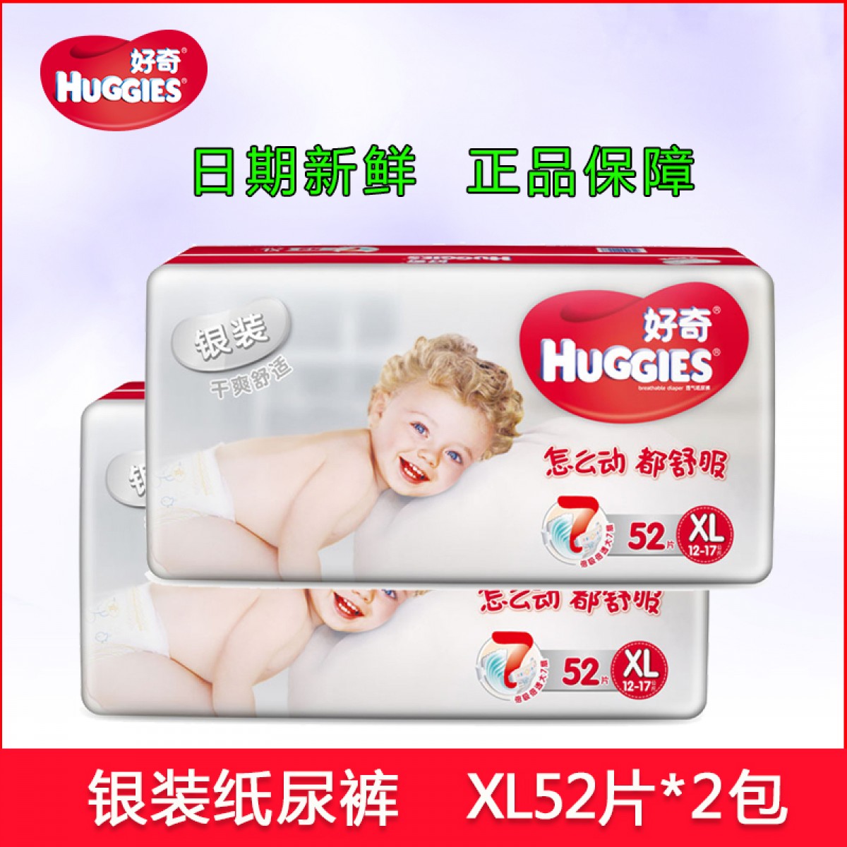 商品名称:好奇 银装干爽舒适纸尿裤xl104片婴儿宝宝超薄透气尿不湿xl52*2包