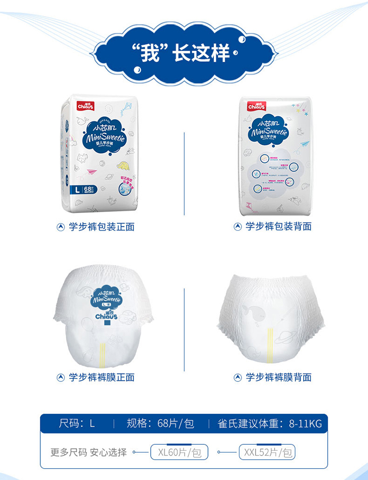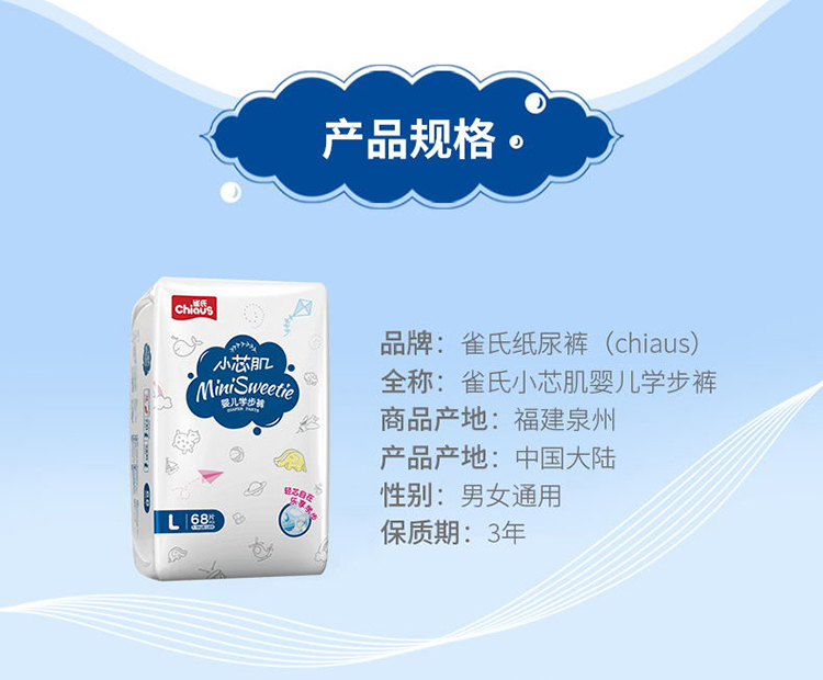 商品名称:雀氏 小芯肌拉拉裤L68片女男宝宝婴儿尿不湿超薄透气非纸尿裤