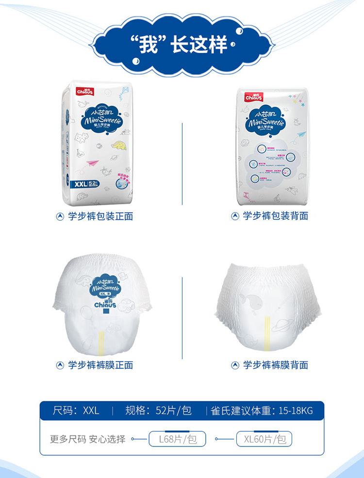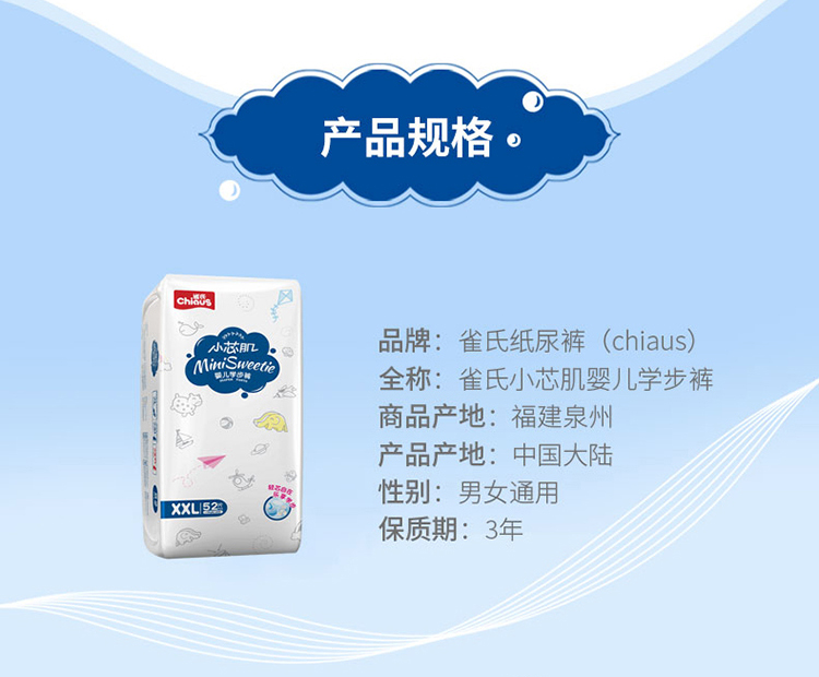 商品名称:雀氏 小芯肌拉拉裤特大号XXL52婴儿尿不湿夏季超薄透气非纸尿裤