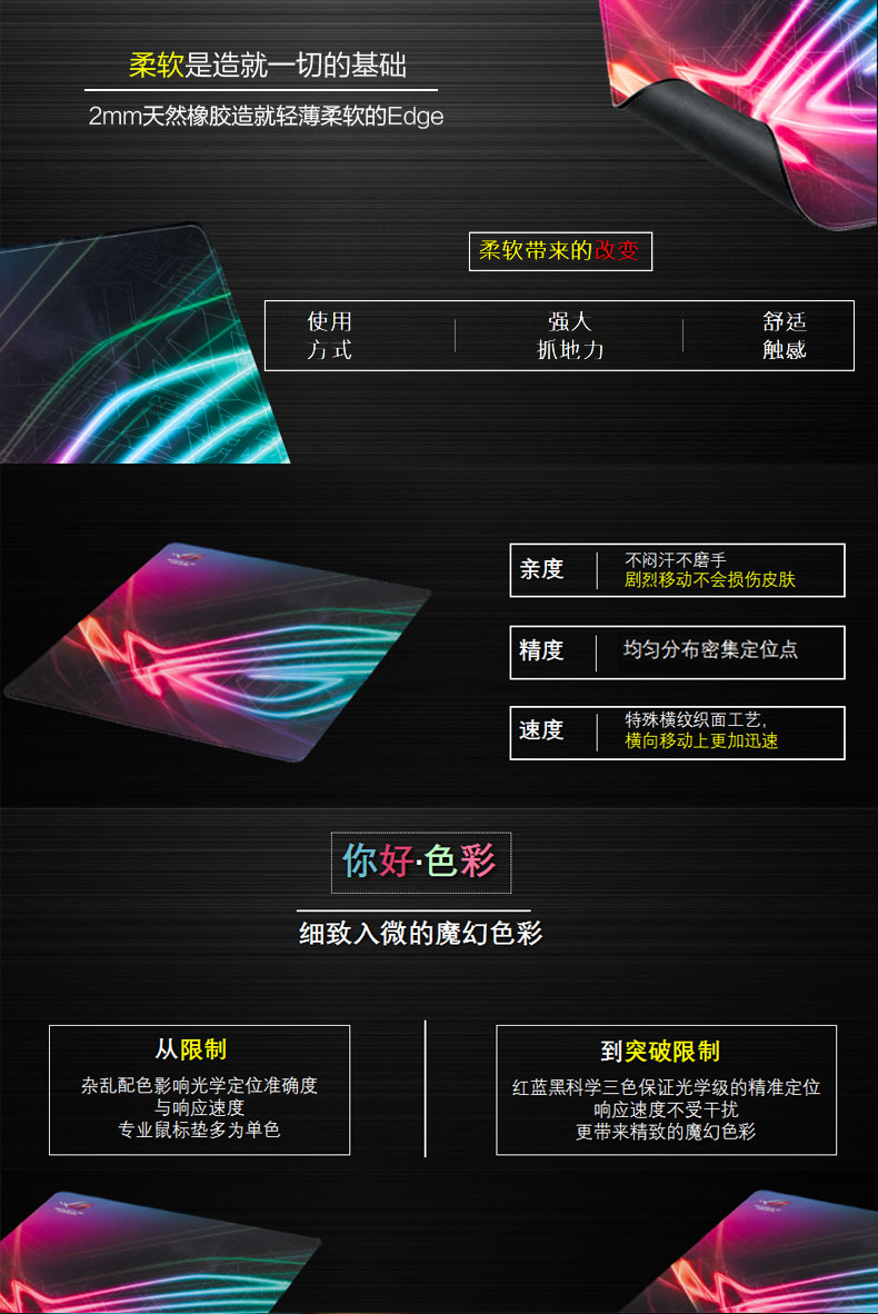华硕 魔界玩家国度鼠标垫游戏电竞游戏鼠标垫包边布 ROG edge