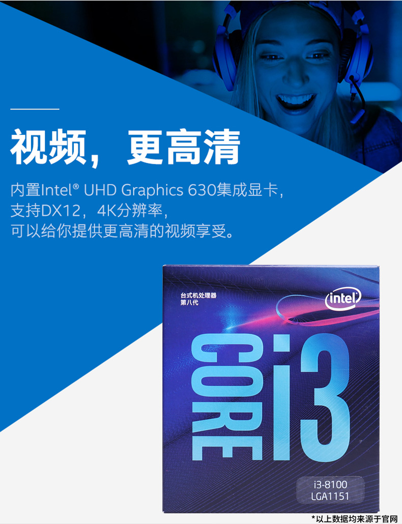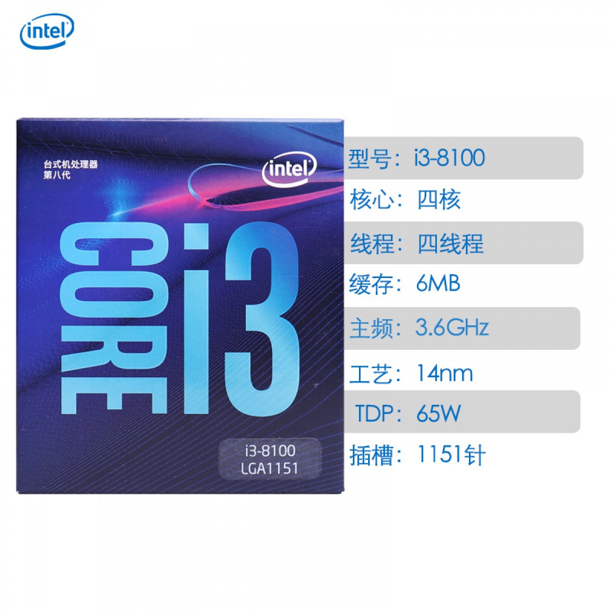 Intel/英特尔 i3八代i3 8100 四核CPU处理器台式机电脑1151针盒装