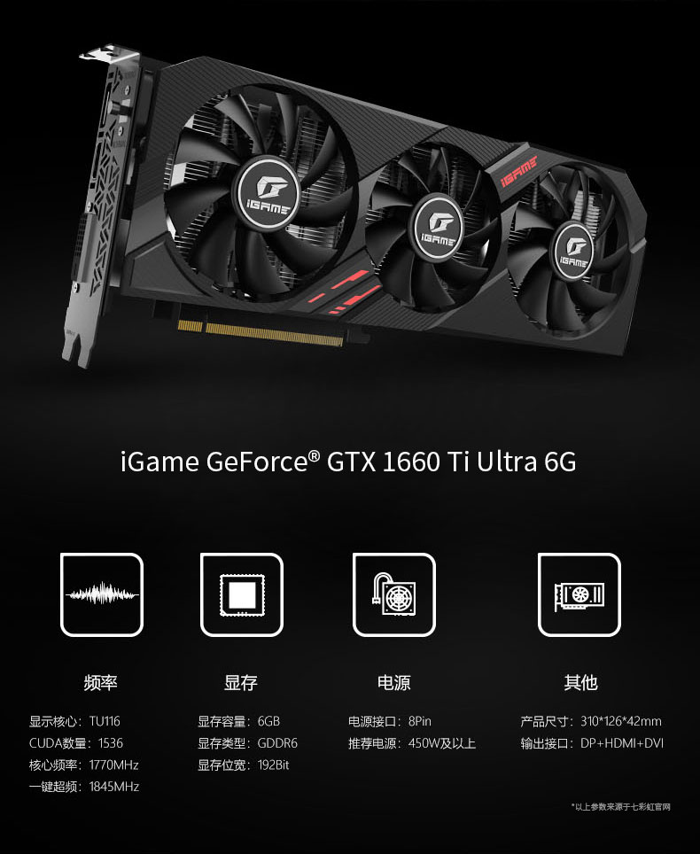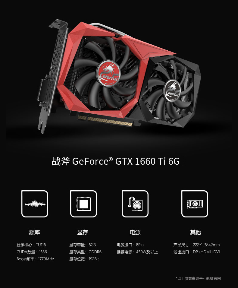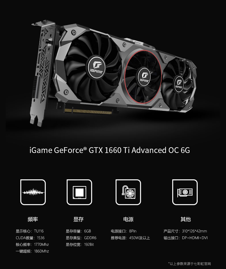 七彩虹 GTX1660Ti 6G电脑显卡台式机吃鸡游戏独立显卡
