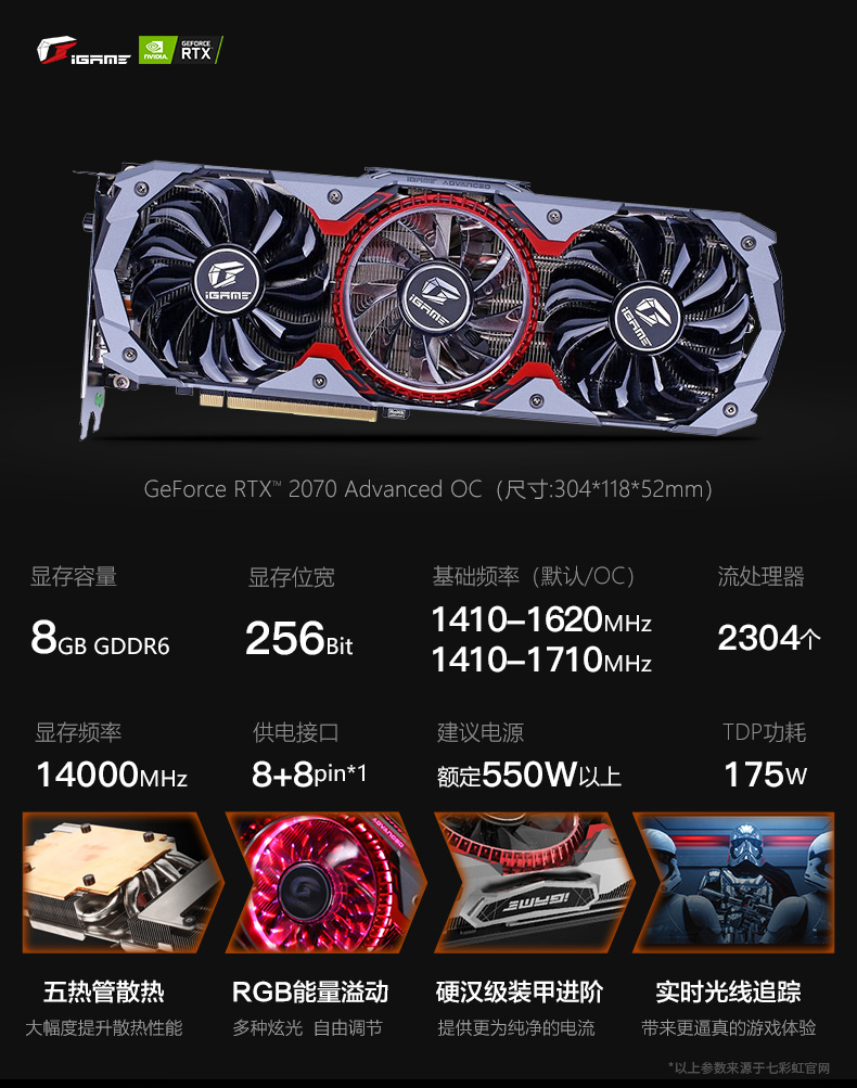 商品名称:七彩虹 RTX2070 8G Ultra/AD/Vulcan 电脑显卡台式机游戏独立显卡