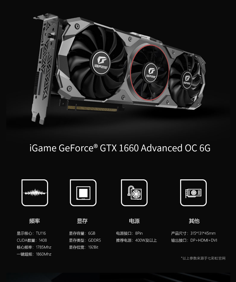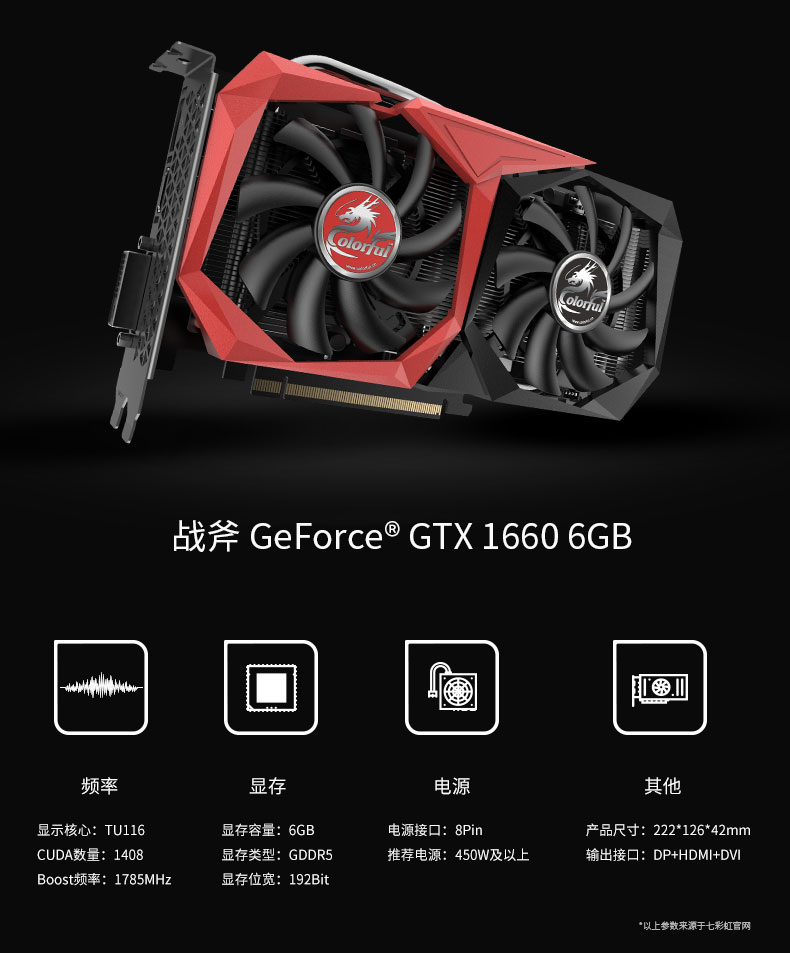 商品名称:七彩虹 GTX1660 6G 战斧/Ultra/AD电脑显卡台式机吃鸡游戏独立显卡