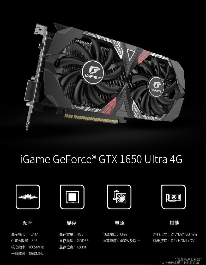 七彩虹 iGame GTX1650 4G Ultra烈焰战神/战斧电脑显卡台式机Apex英雄吃鸡游戏独立显卡