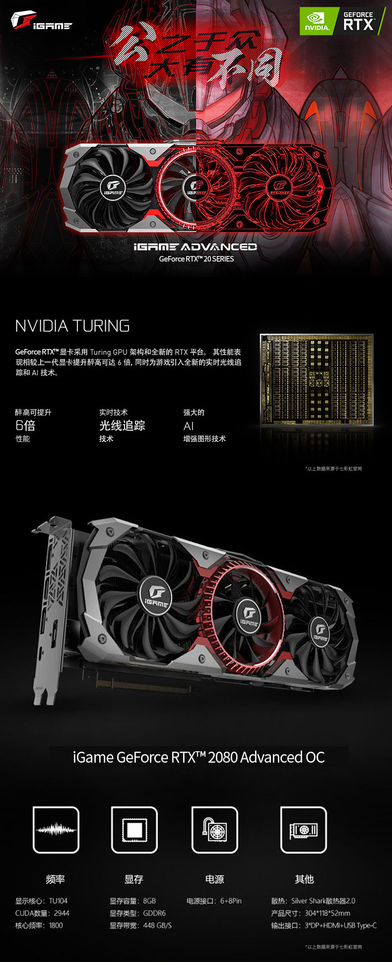 商品名称:七彩虹 iGame RTX 2080 8G Advanced OC 台式机电脑图灵高端游戏逆水寒剑网3独立显卡电竞Turing显卡