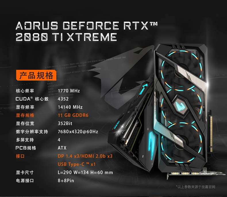 商品名称:技嘉 RTX2080Ti 11G Gaming OC/大雕电脑显卡台式机游戏独立显卡