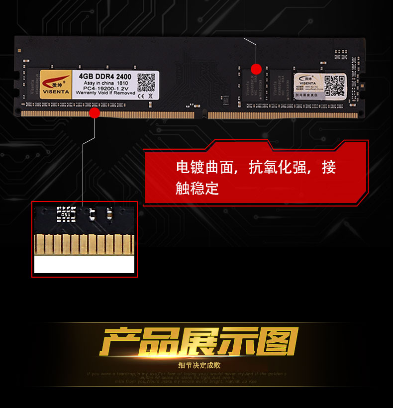 商品名称:★ 微绅 单条台式机主机兼容2133 2666可双通电脑内存条计算机游戏提速 DDR4 4GB 2400