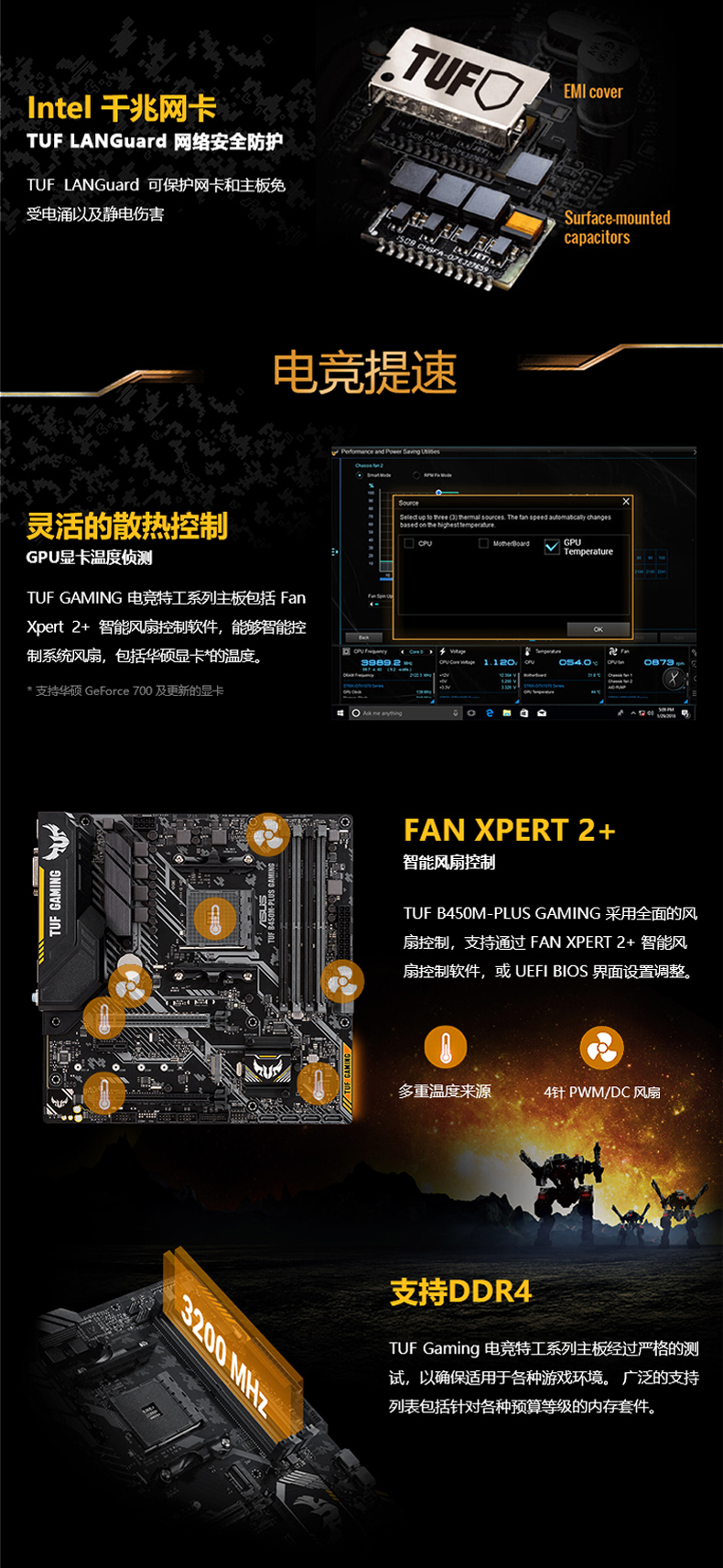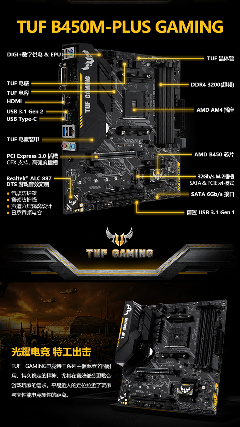 商品名称:华硕 GAMING 电脑台式游戏主板AM4接口 b450主板 TUF B450M-PLUS