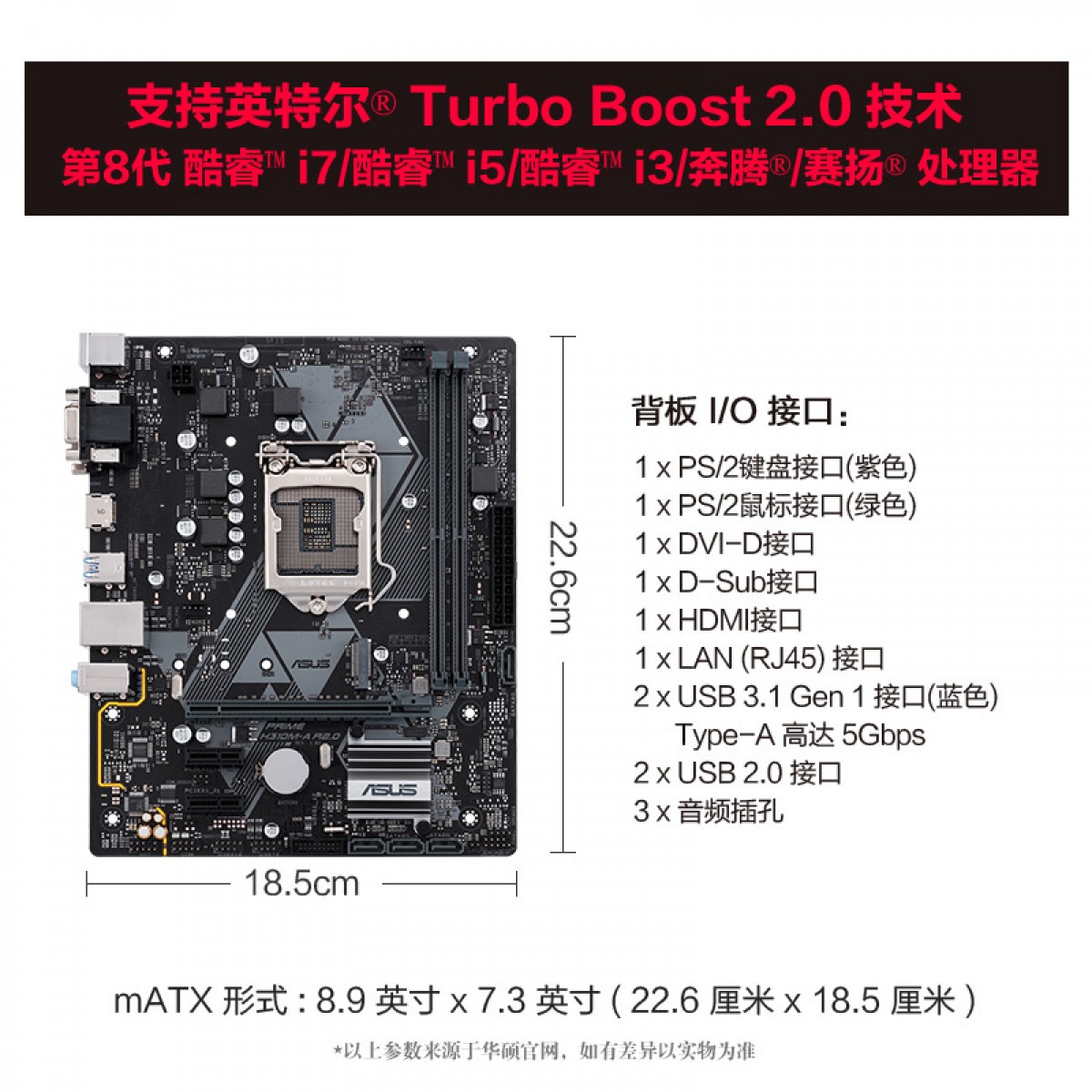商品名称:华硕 PRIME H310M-A R2.0电脑台式机游戏办公主板用1151针CPU 兼容8100 H310M