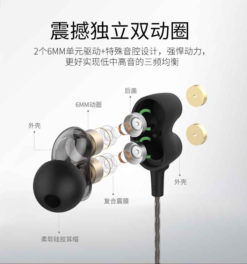 商品名称:兰士顿 四核双动圈耳机入耳式有线HIFI超重低音炮通用魔音耳塞 D2
