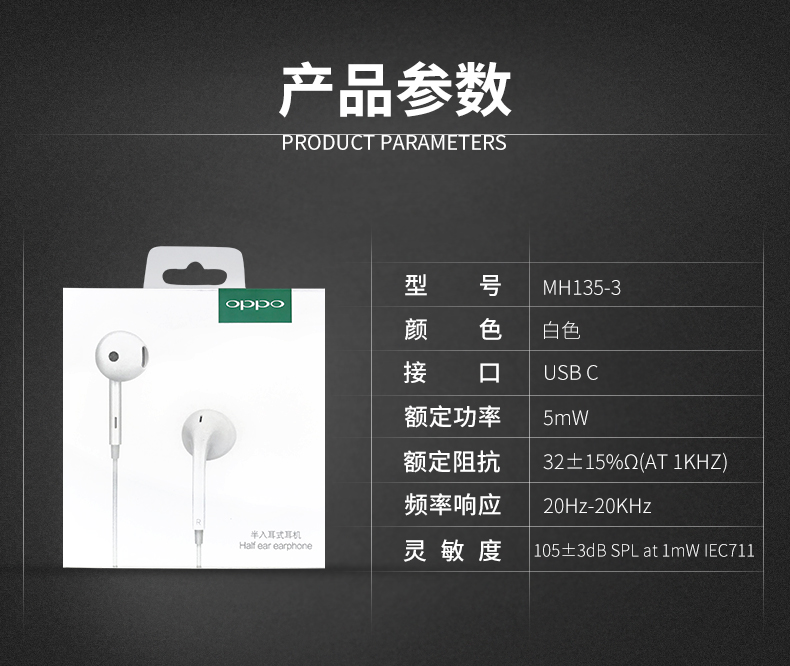 商品名称:OPPO 耳机 已包装半入耳式MH135耳机(type-c接口)