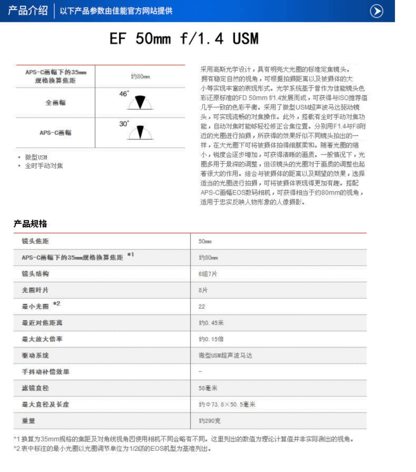 商品名称:★ 佳能 大光圈标准人像微距单反镜头 EF 50mm f/1.4 USM