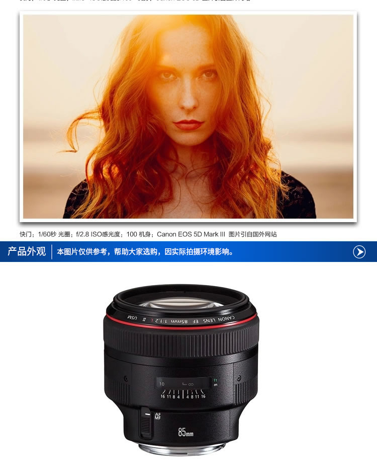 商品名称:佳能 85 f1.2二代镜头 人像定焦 EF 85mm f/1.2L II USM