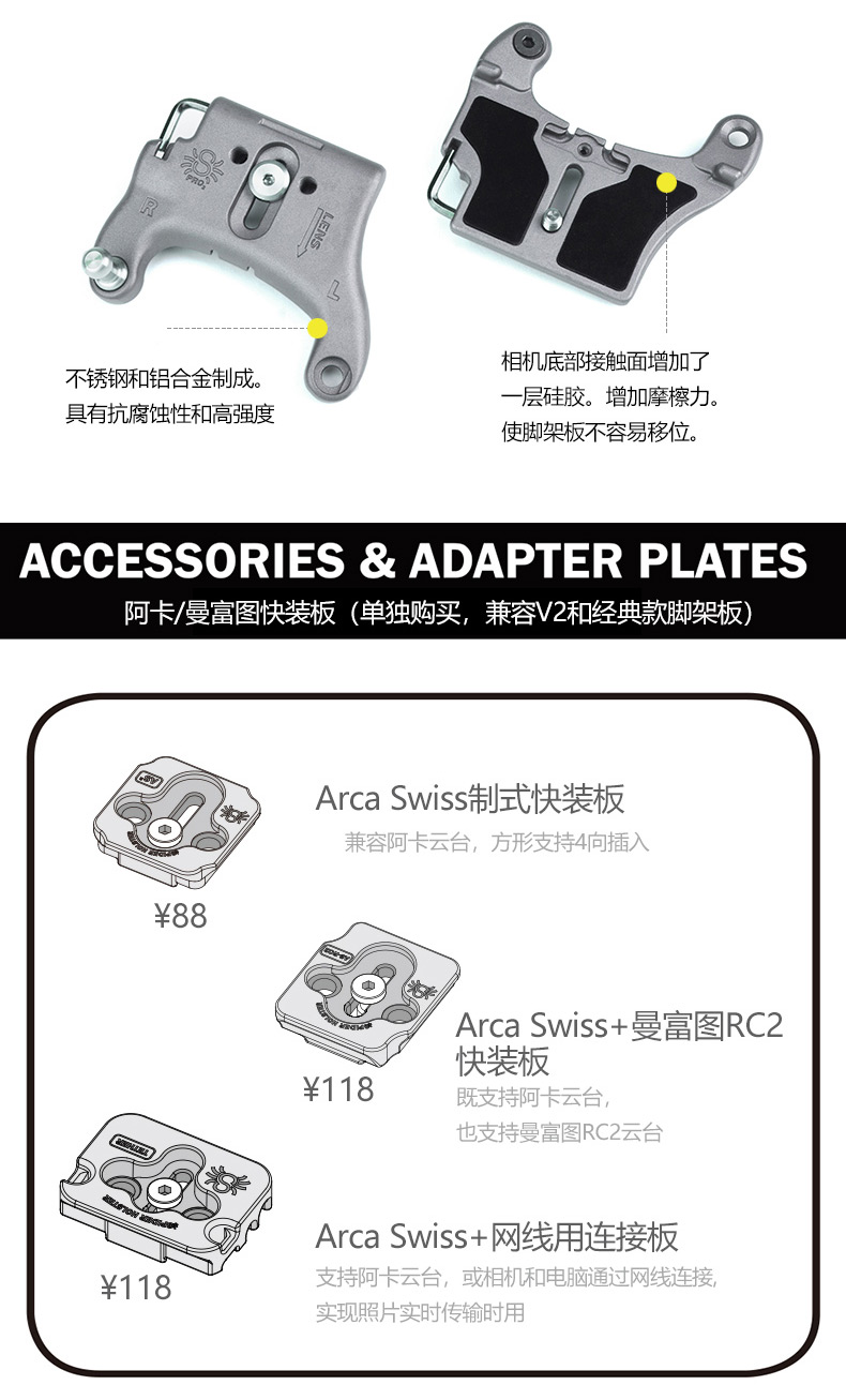 目前主要有:1、针对专业摄影师的狼蛛系列,2、轻型相机及户外轻摄影的黑寡妇系列。