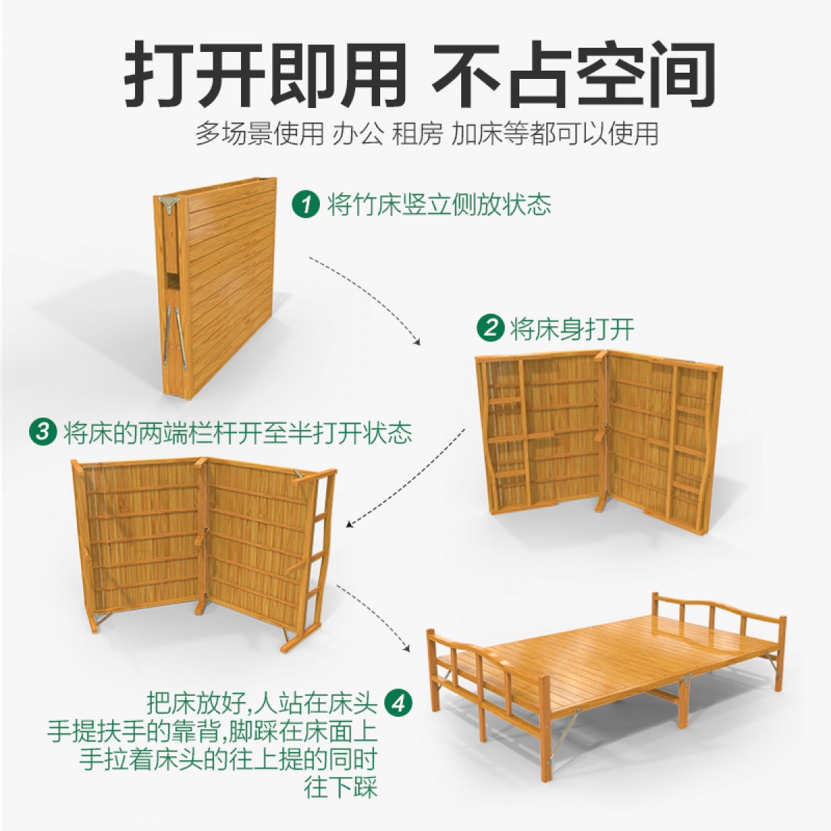 国产 竹床折叠床单人1.2米成人家用1.5米双人实木全竹子床午休午睡凉床