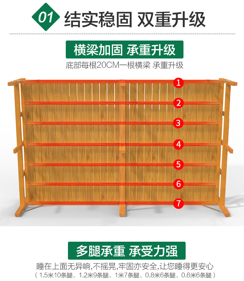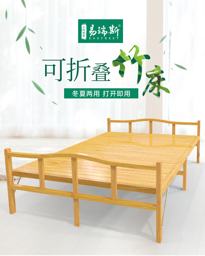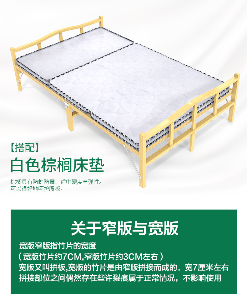 商品名称:国产 竹床折叠床单人1.2米成人家用1.5米双人实木全竹子床午休午睡凉床