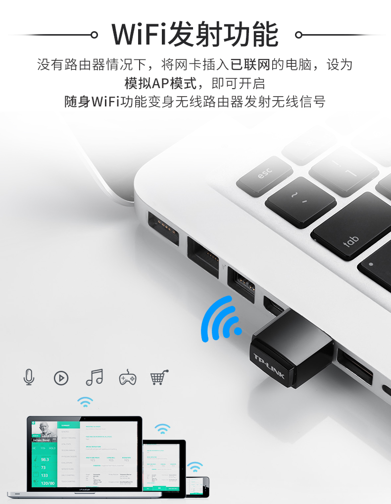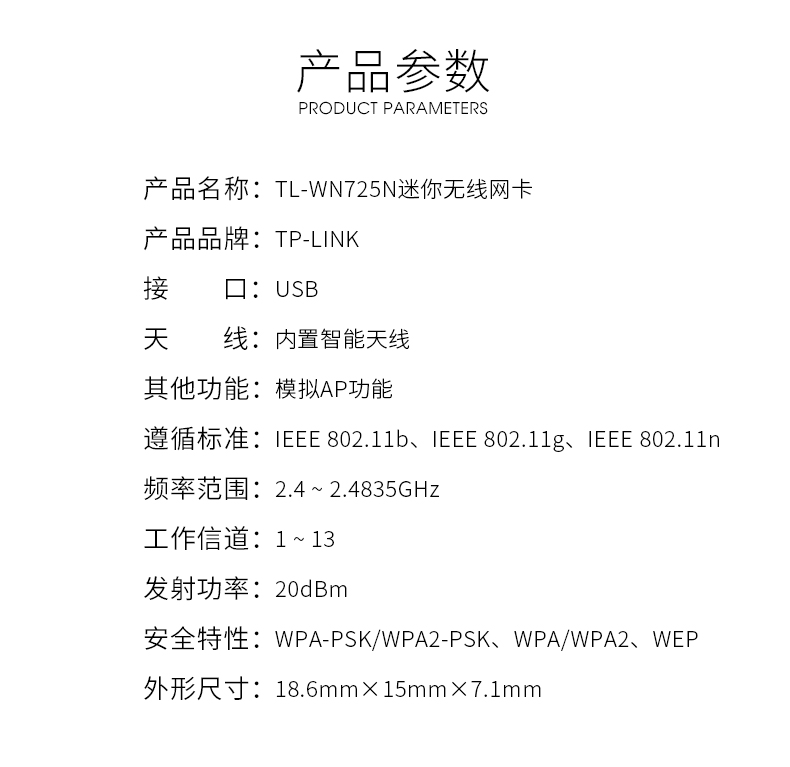 商品名称:TP -LINK TL-WN725N USB无线网卡 台式机笔记本电脑wifi接收器发射