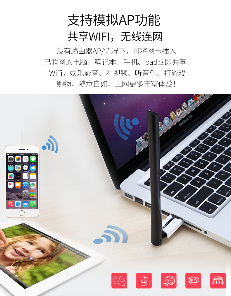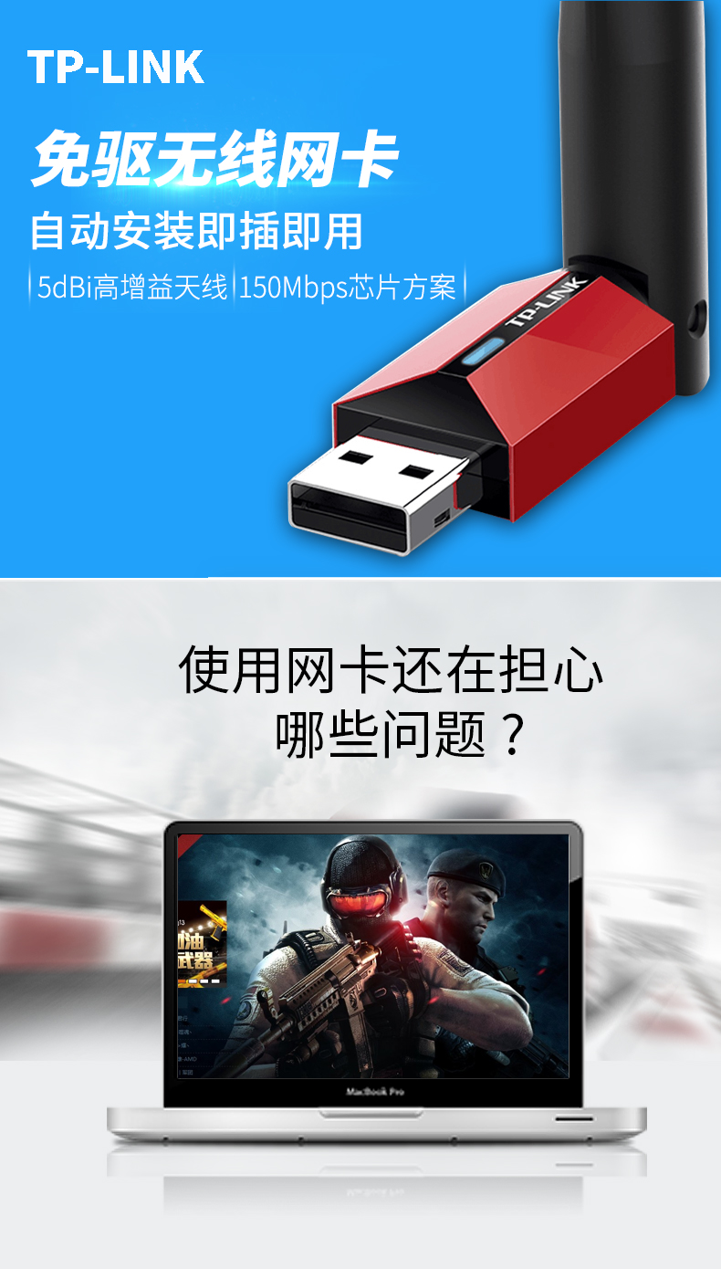 商品名称:TP-LINK无线网卡usb台式机电脑笔记本wifi信号接收发射器tplink