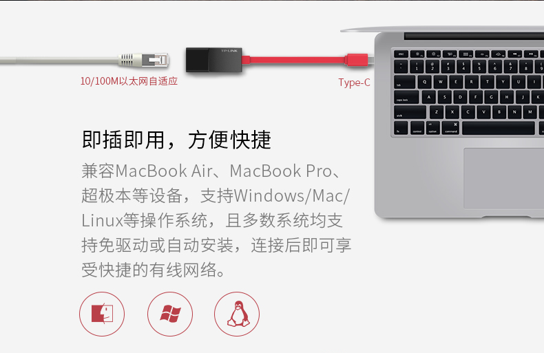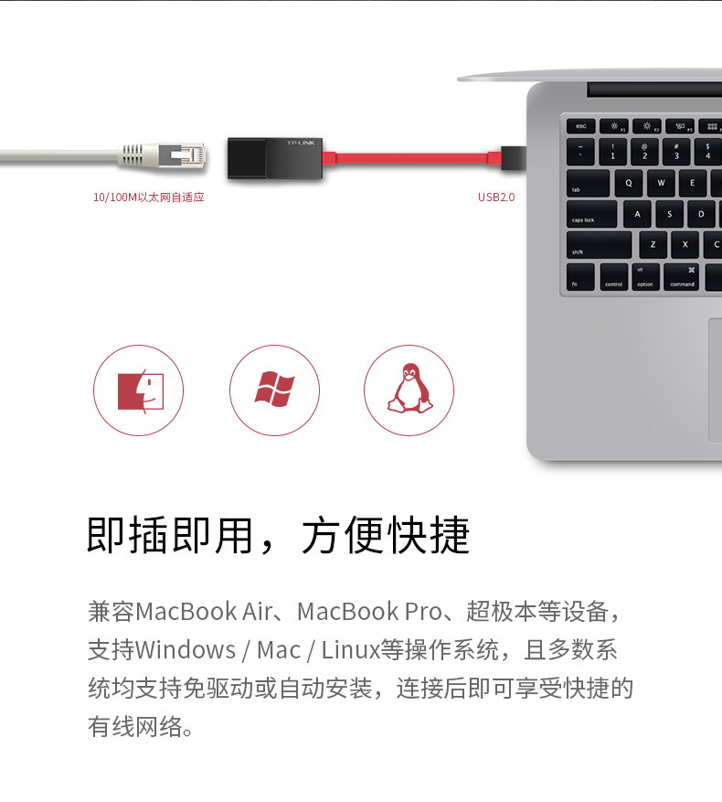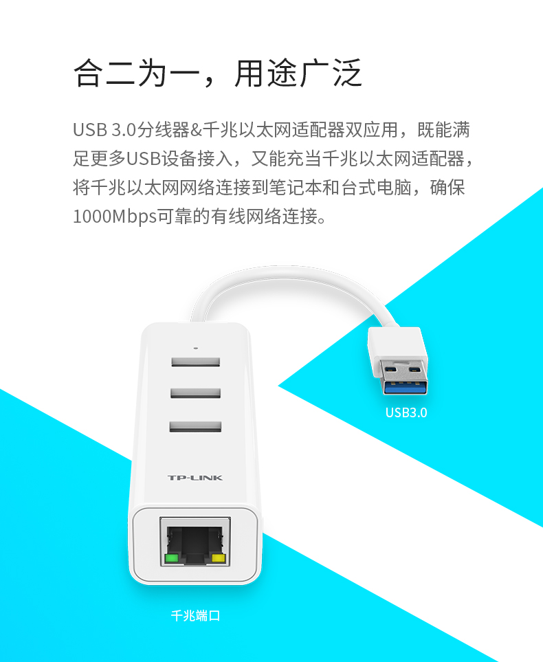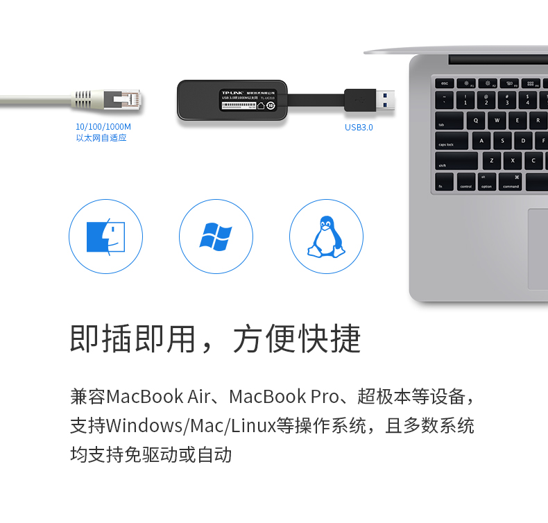 商品名称:TP -LINK 网卡台式机usb转网线接口转接头有线千兆网口转换器rj45小米盒子华硕联想苹果笔记本外接网卡分线器