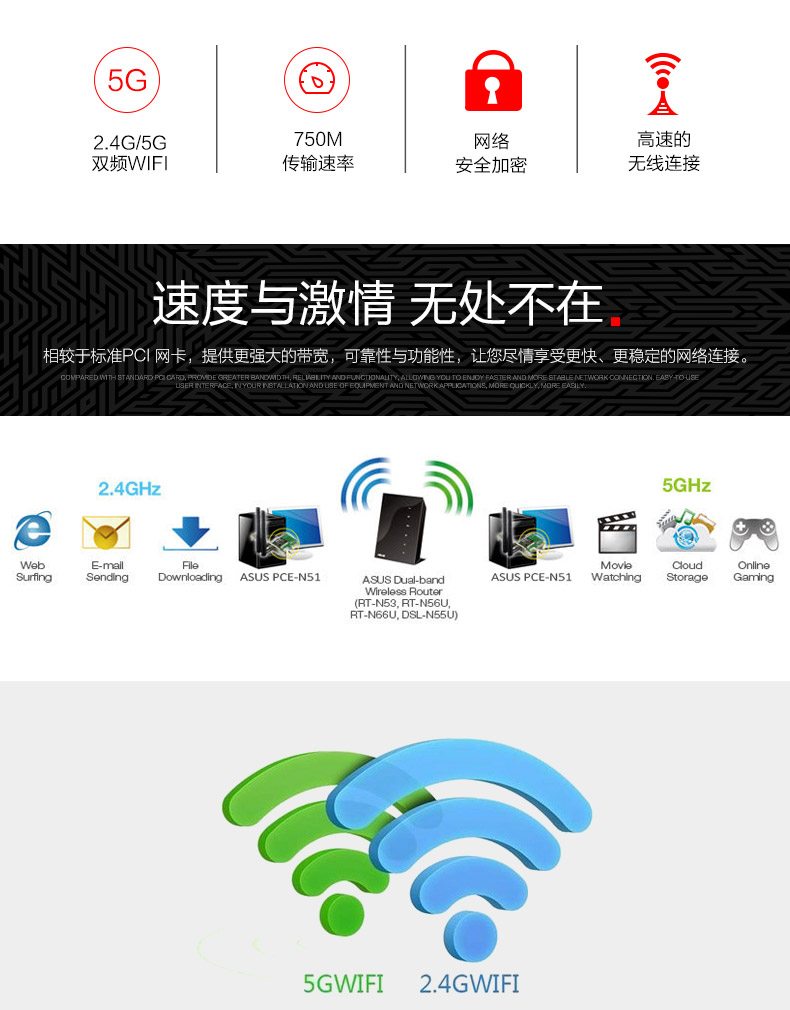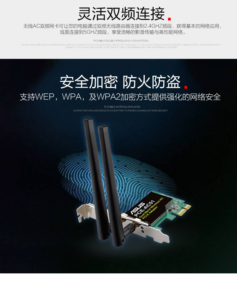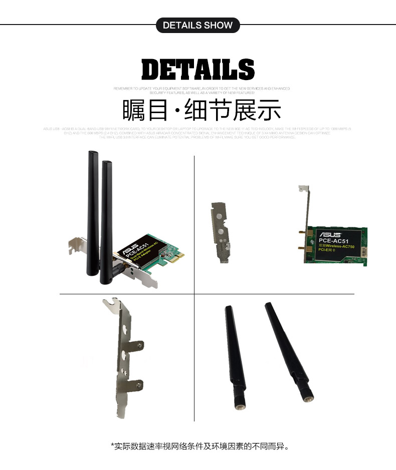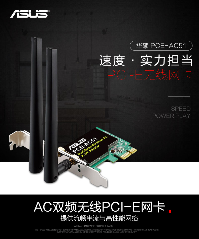 华硕 PCE-AC51 双频AC750无线网卡 台式机内置无线wifi网卡
