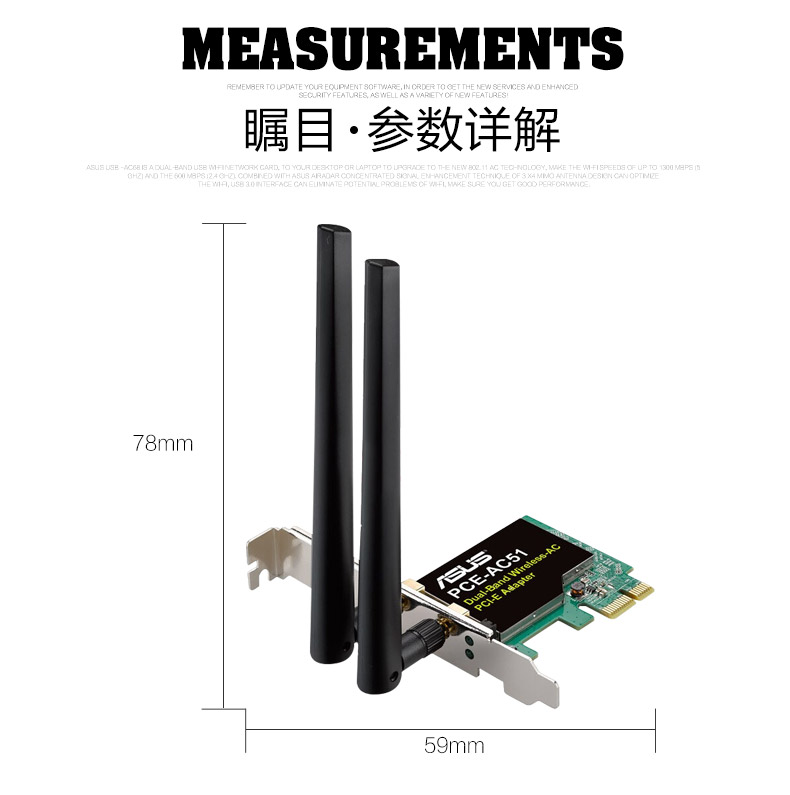 商品名称:华硕 PCE-AC51 双频AC750无线网卡 台式机内置无线wifi网卡