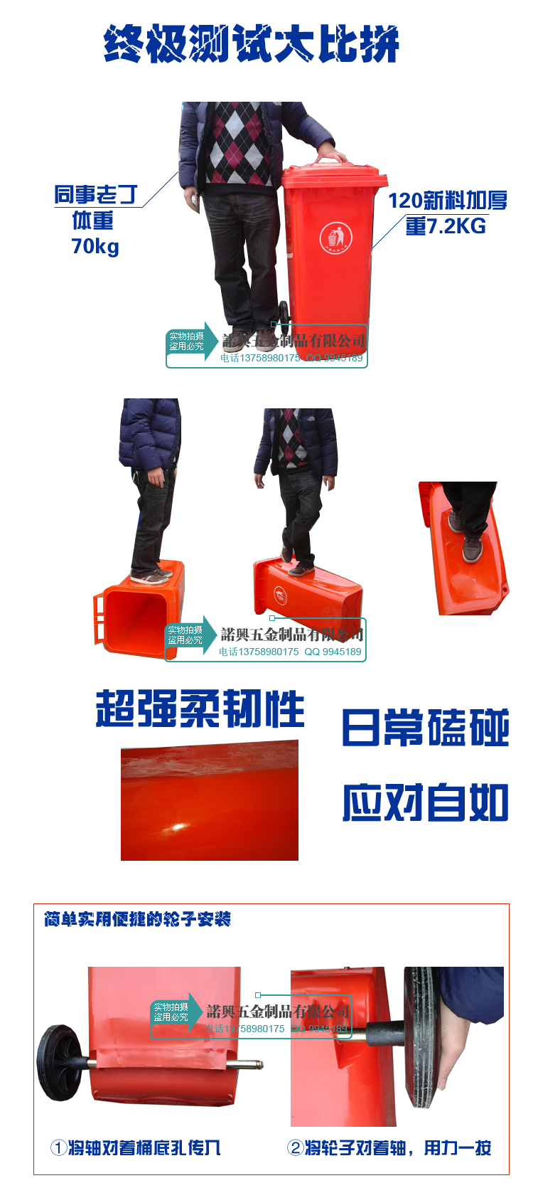 6.桶体与盖采用高密度抗冲击聚乙稀(HDPE)一次注模成型。
