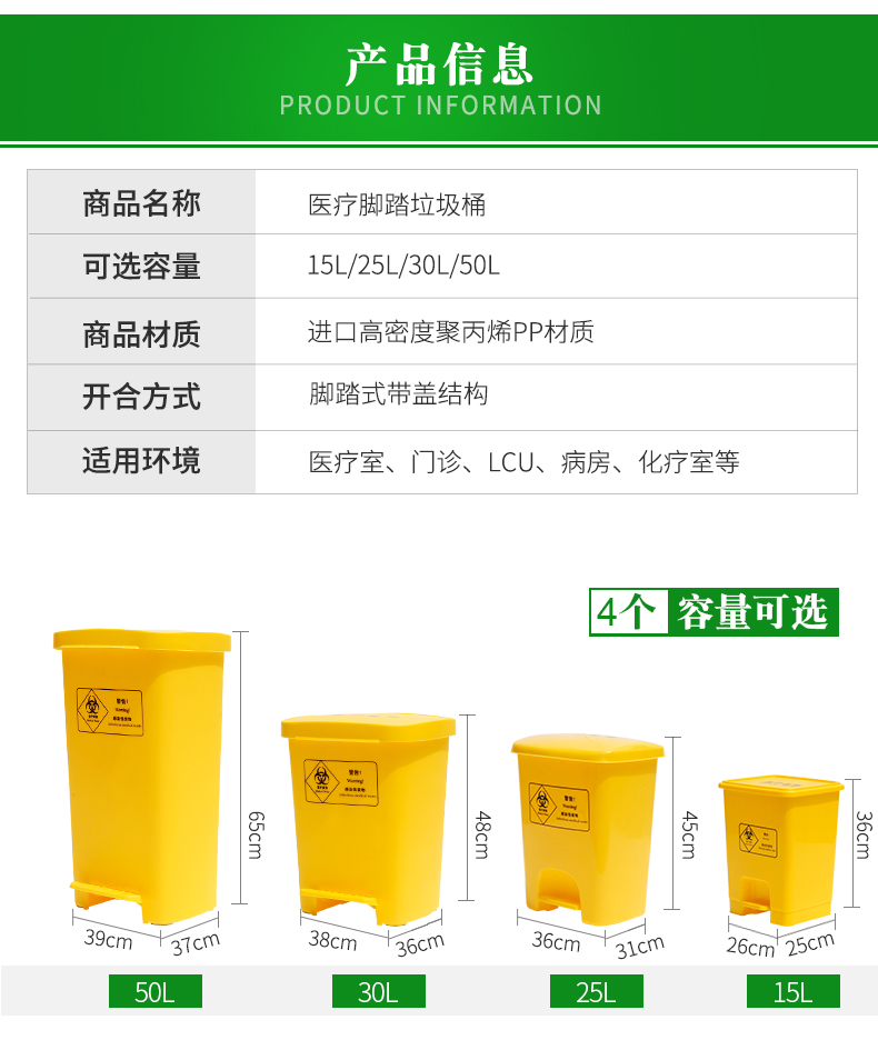 商品名称:国产 加厚 黄色医院垃圾桶脚踩诊疗收纳污物诊所废物垃圾桶脚踏NX-YL001