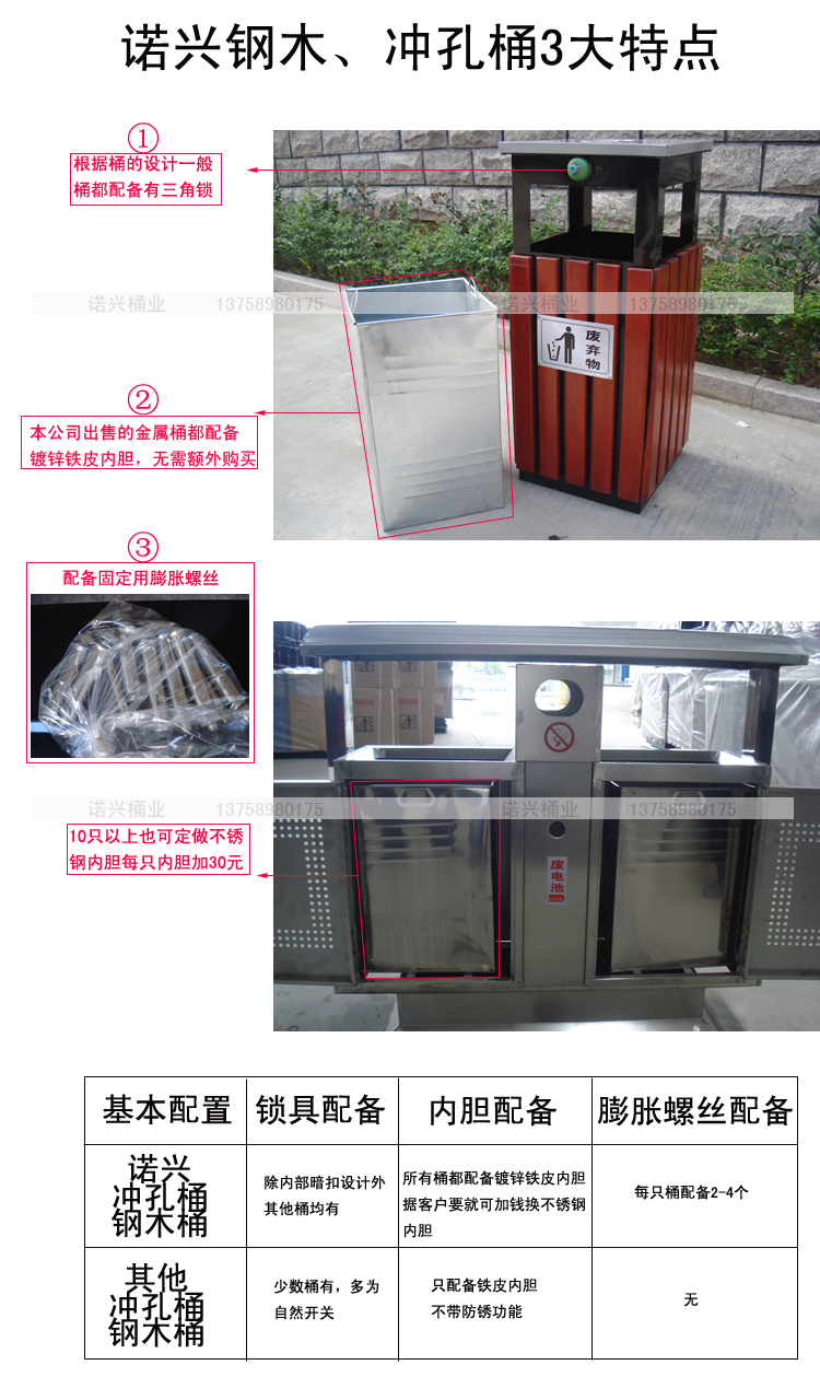 1、优质钢板,光滑桶身为数码冲孔钢板;