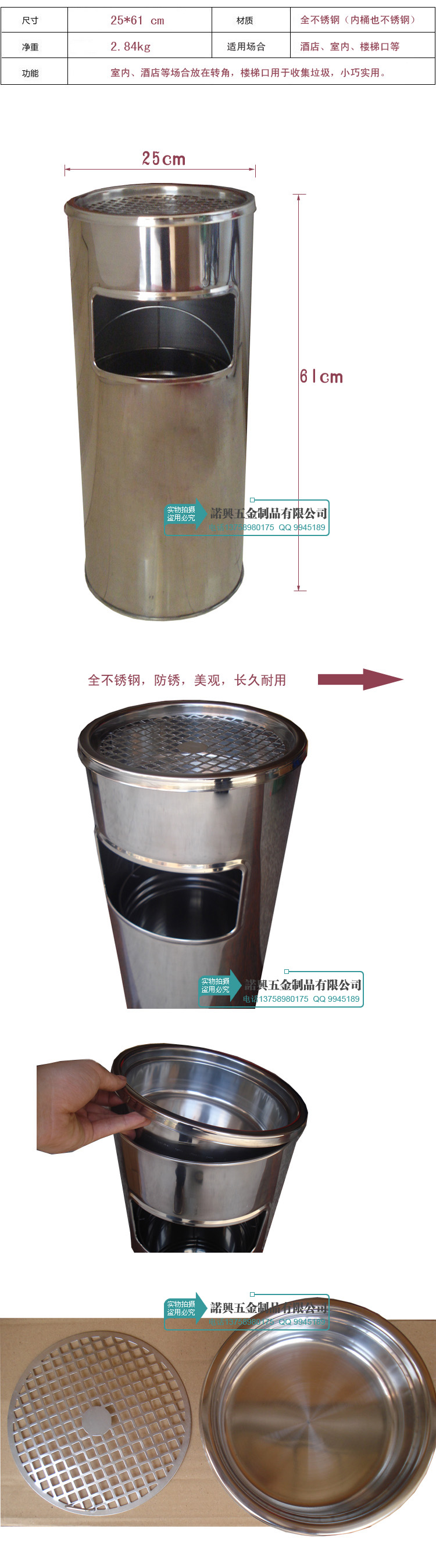 商品名称:国产 室内酒店垃圾桶电梯口走廊转角带烟灰桶 镀锌铁皮胆5709