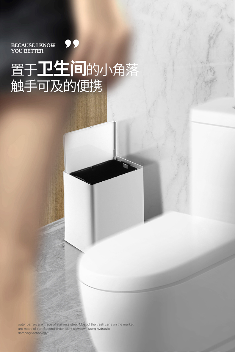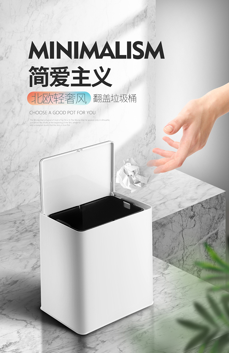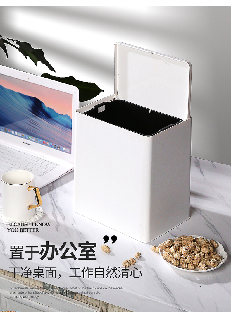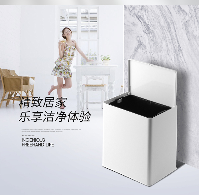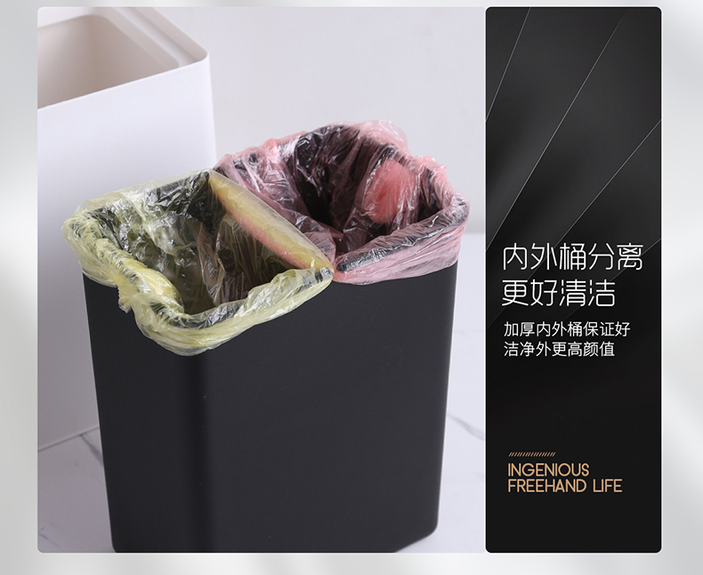 国产 意北欧家用双层垃圾桶客厅卫生间卧室拉圾桶无盖垃圾篓 72035