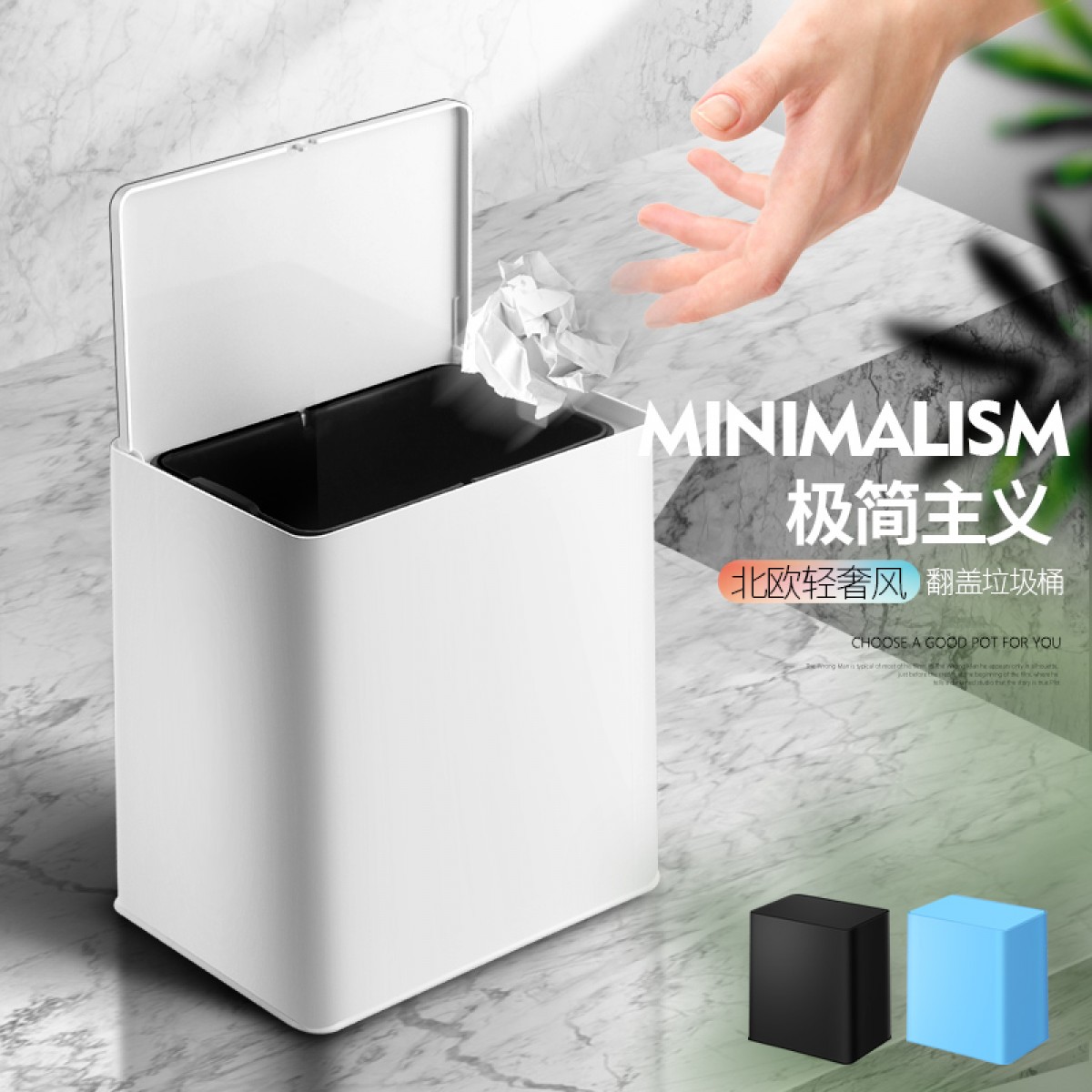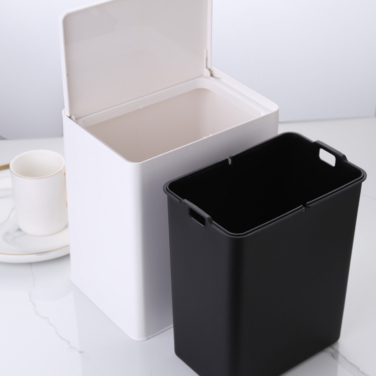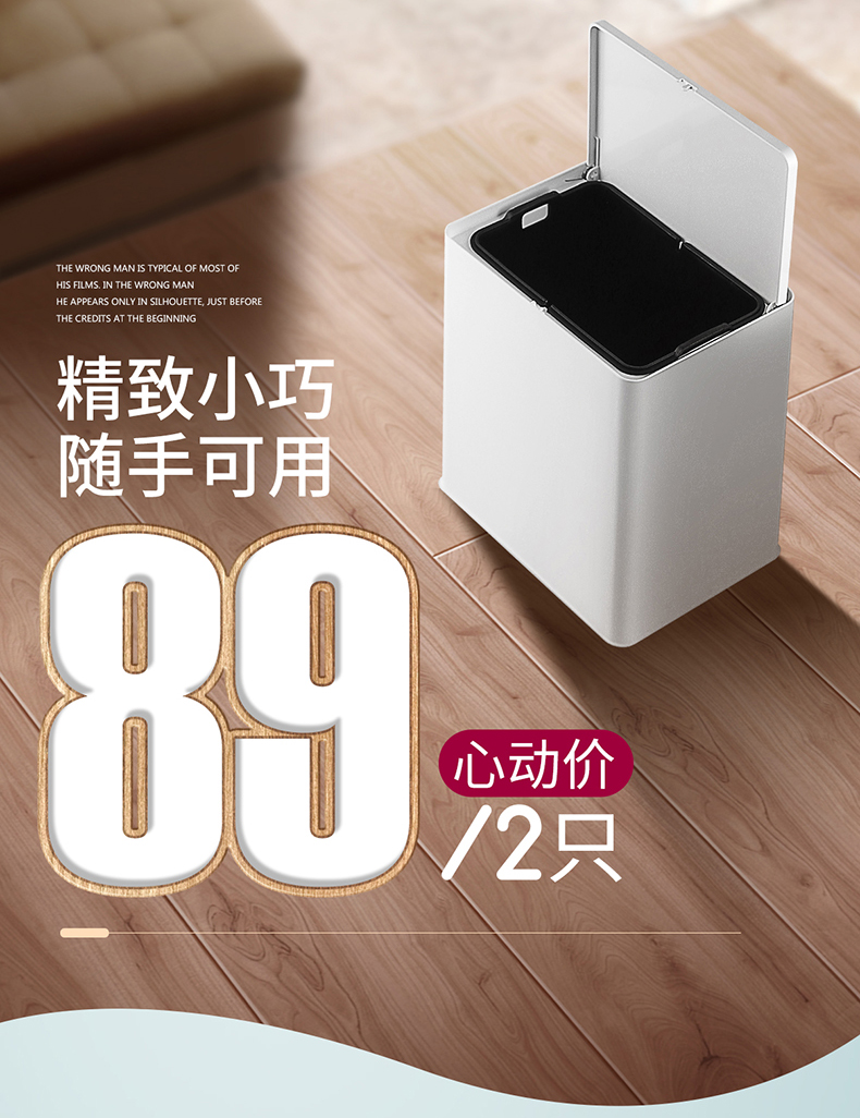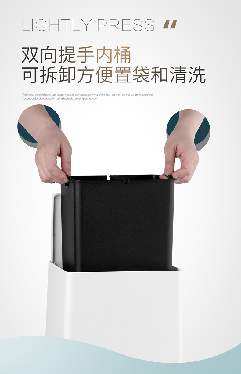 国产 意北欧家用双层垃圾桶客厅卫生间卧室拉圾桶无盖垃圾篓 72035