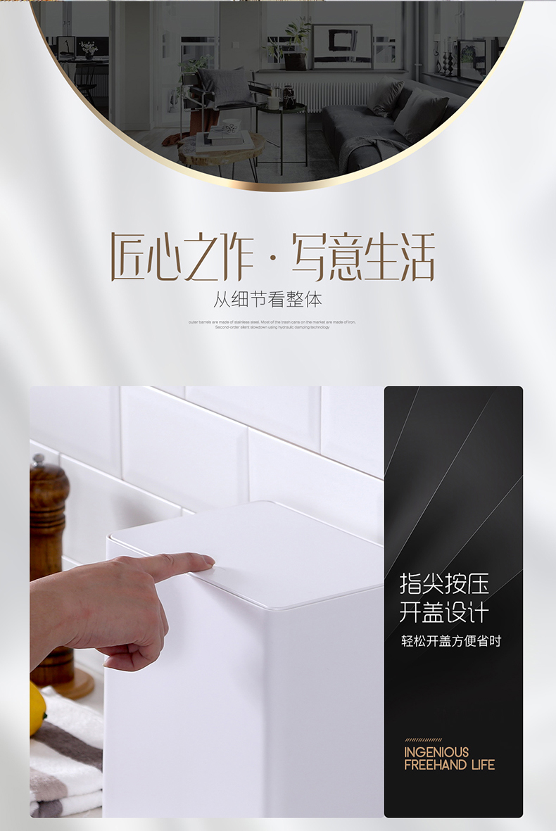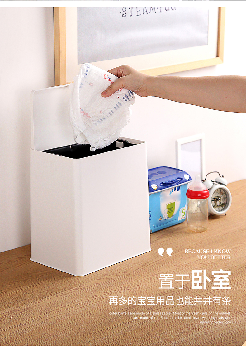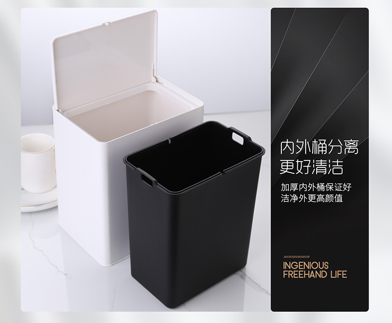 商品名称:国产 北欧按压式垃圾桶家用客厅卧室卫生间厕所带盖大号纸篓塑料 YH-7098