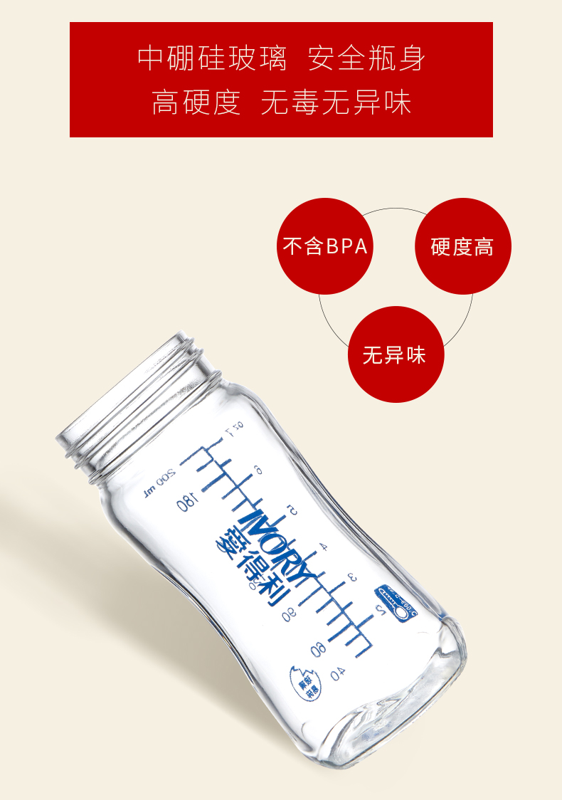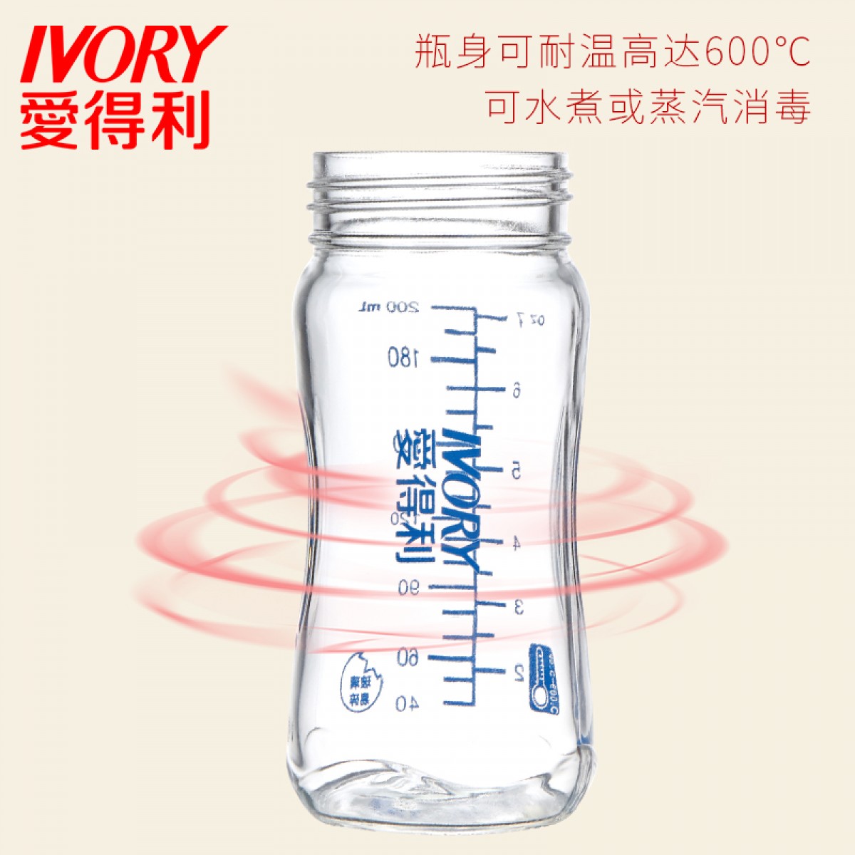 爱得利 玻璃宝宝奶瓶中硼硅婴儿玻璃奶瓶200mL宽口径 A45