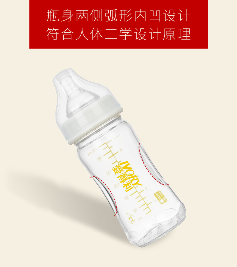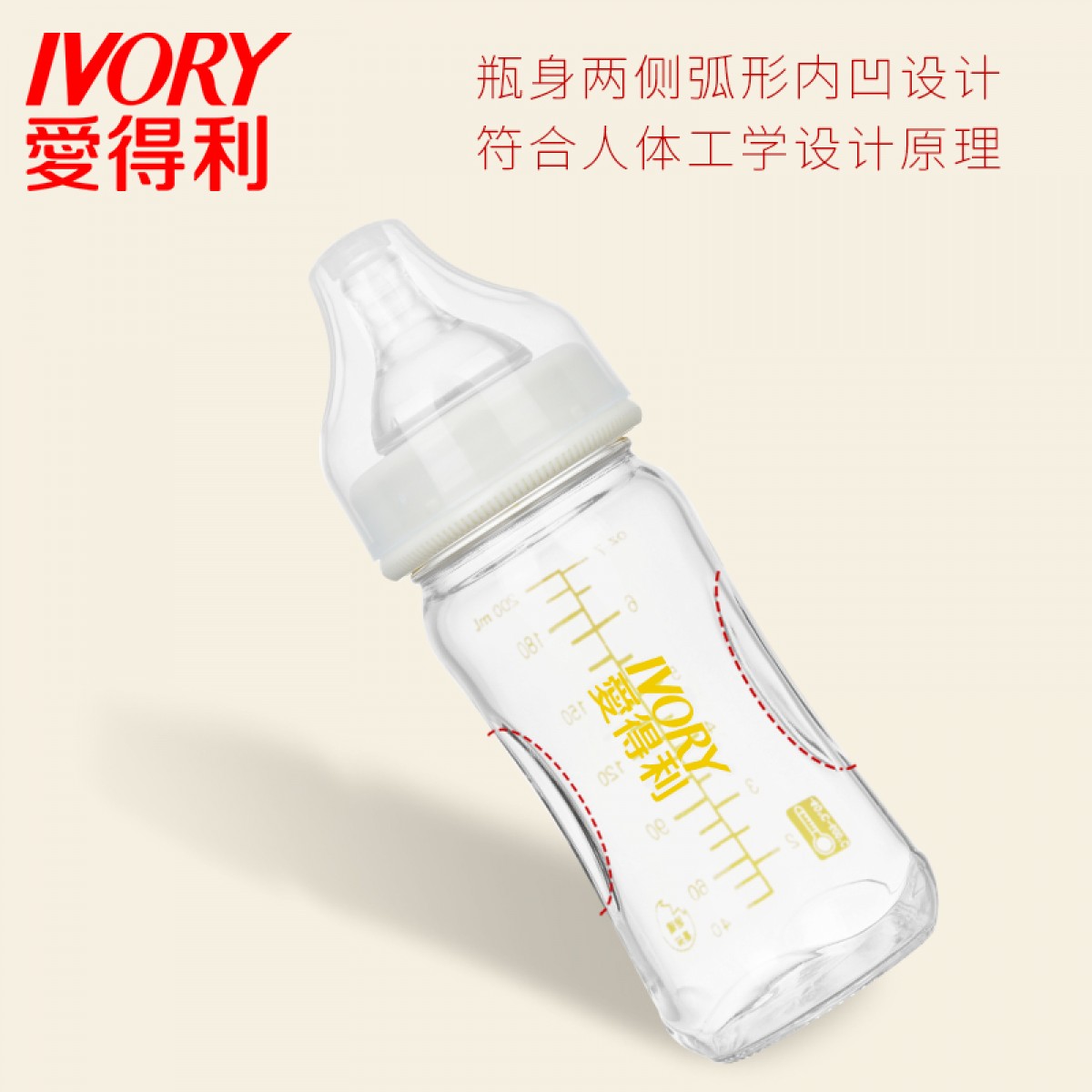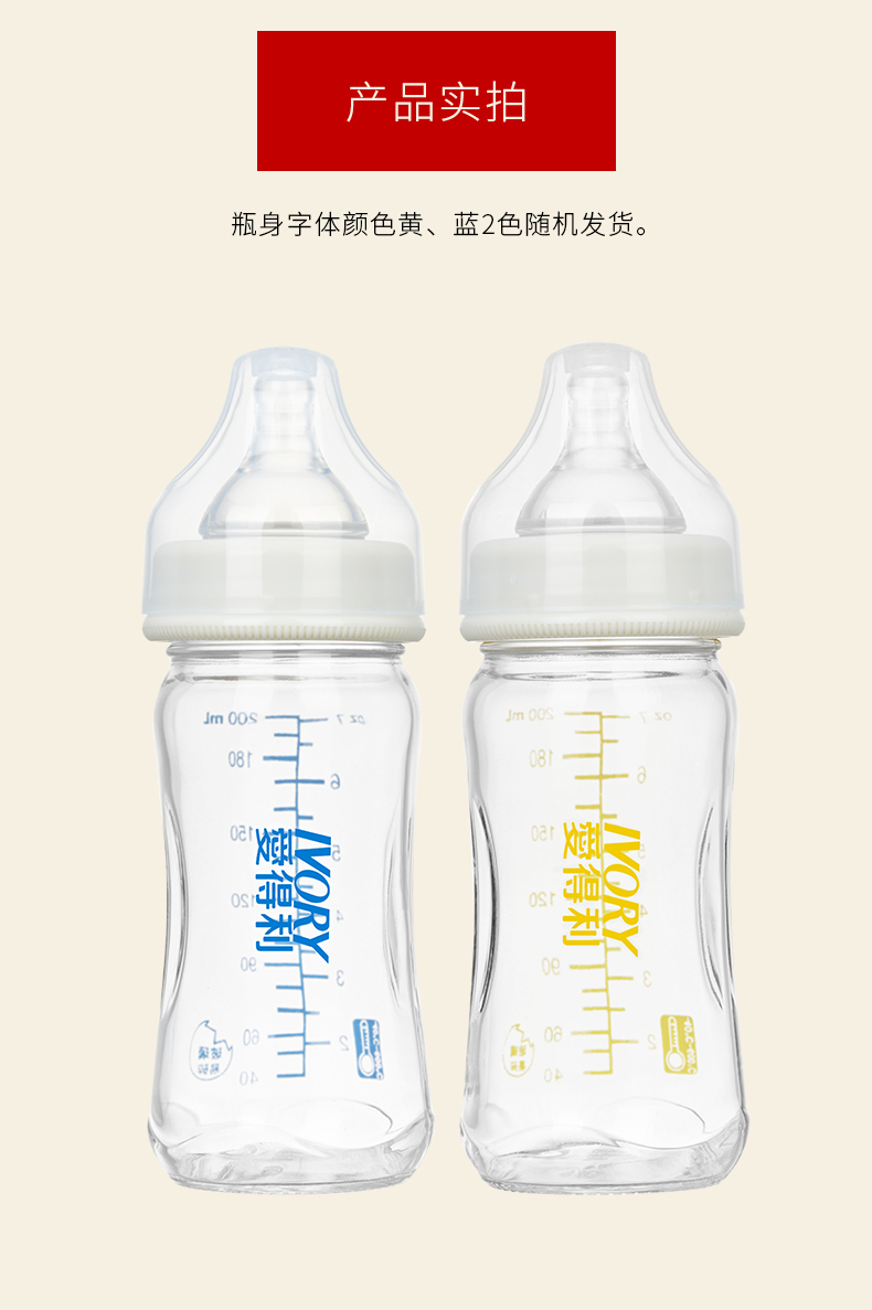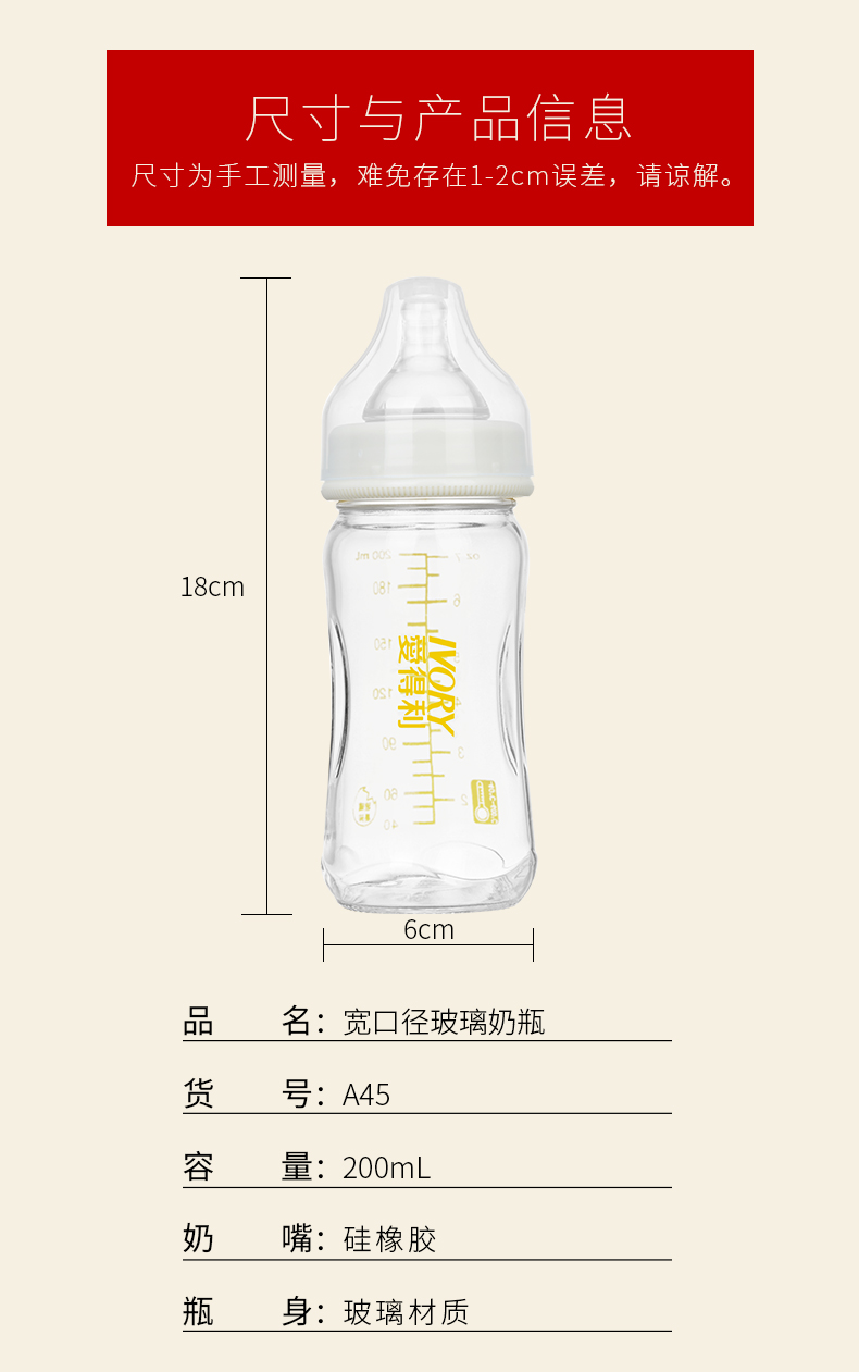 商品名称:爱得利 玻璃宝宝奶瓶中硼硅婴儿玻璃奶瓶200mL宽口径 A45