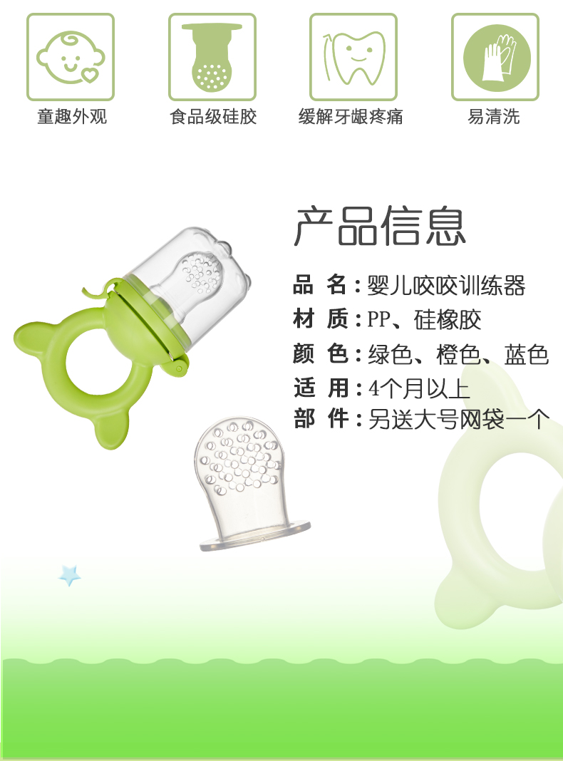 商品名称:爱得利 婴儿咬咬袋训练器果蔬乐磨牙棒工具宝宝吃水果辅食器牙胶