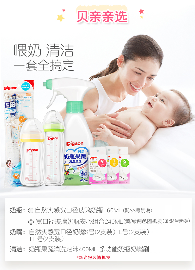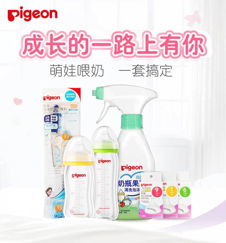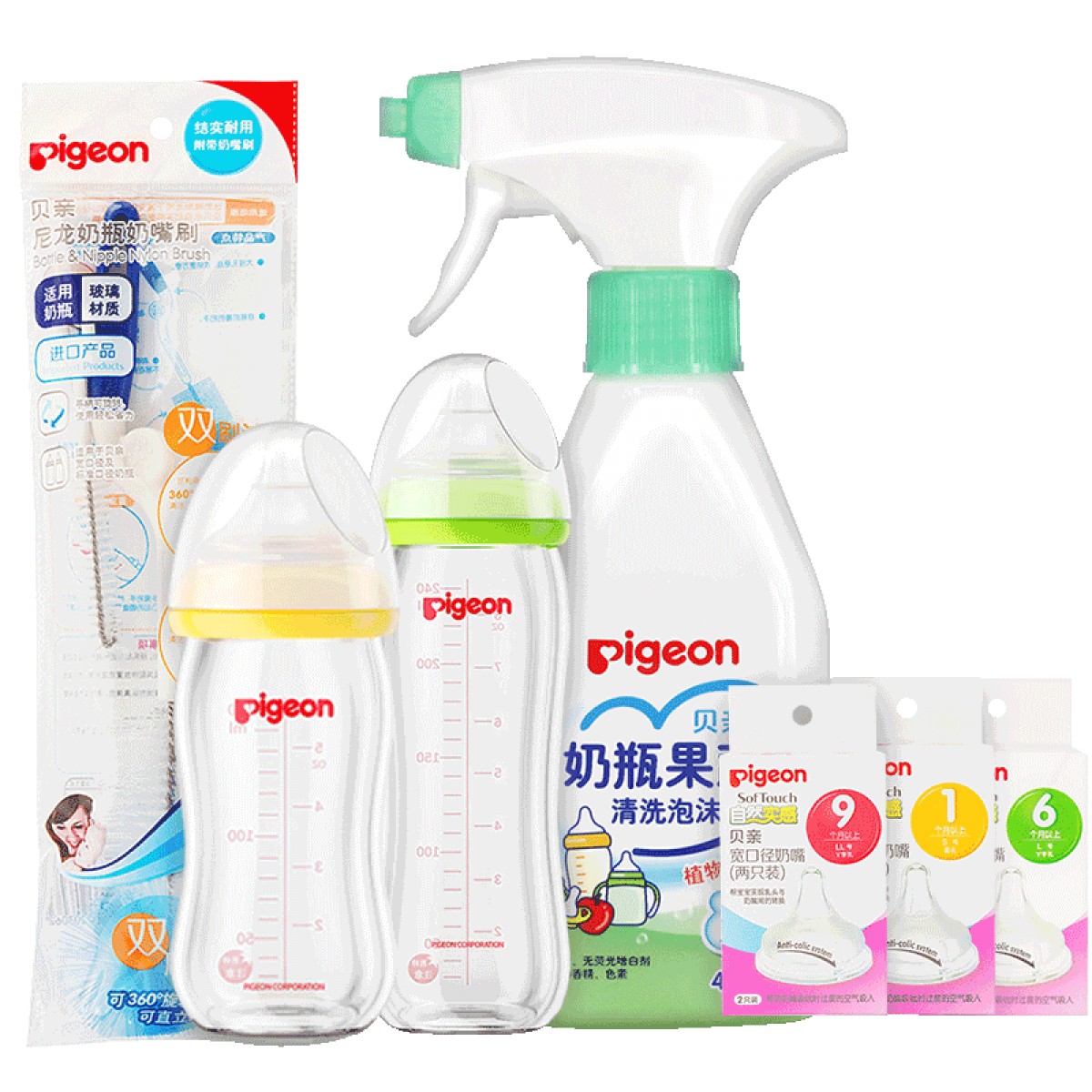 贝亲 宽口径奶瓶奶嘴清洗剂奶嘴刷豪华奶瓶套装