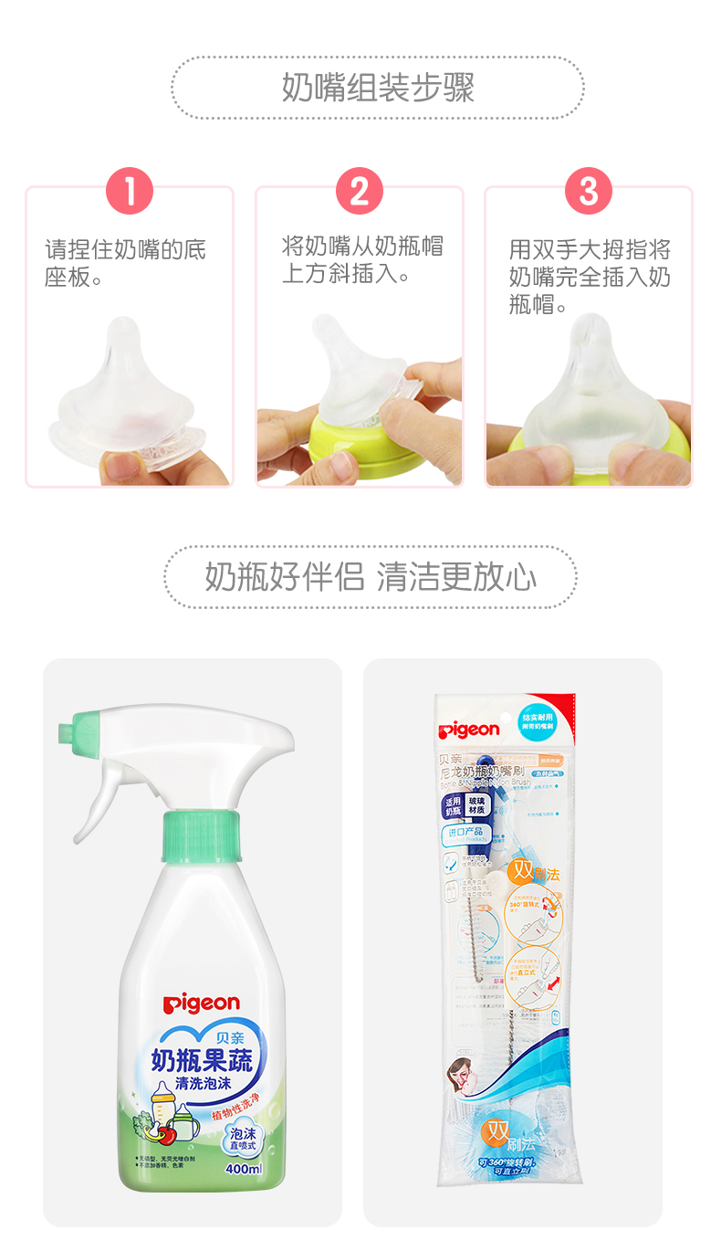商品名称:贝亲 宽口径奶瓶奶嘴清洗剂奶嘴刷豪华奶瓶套装